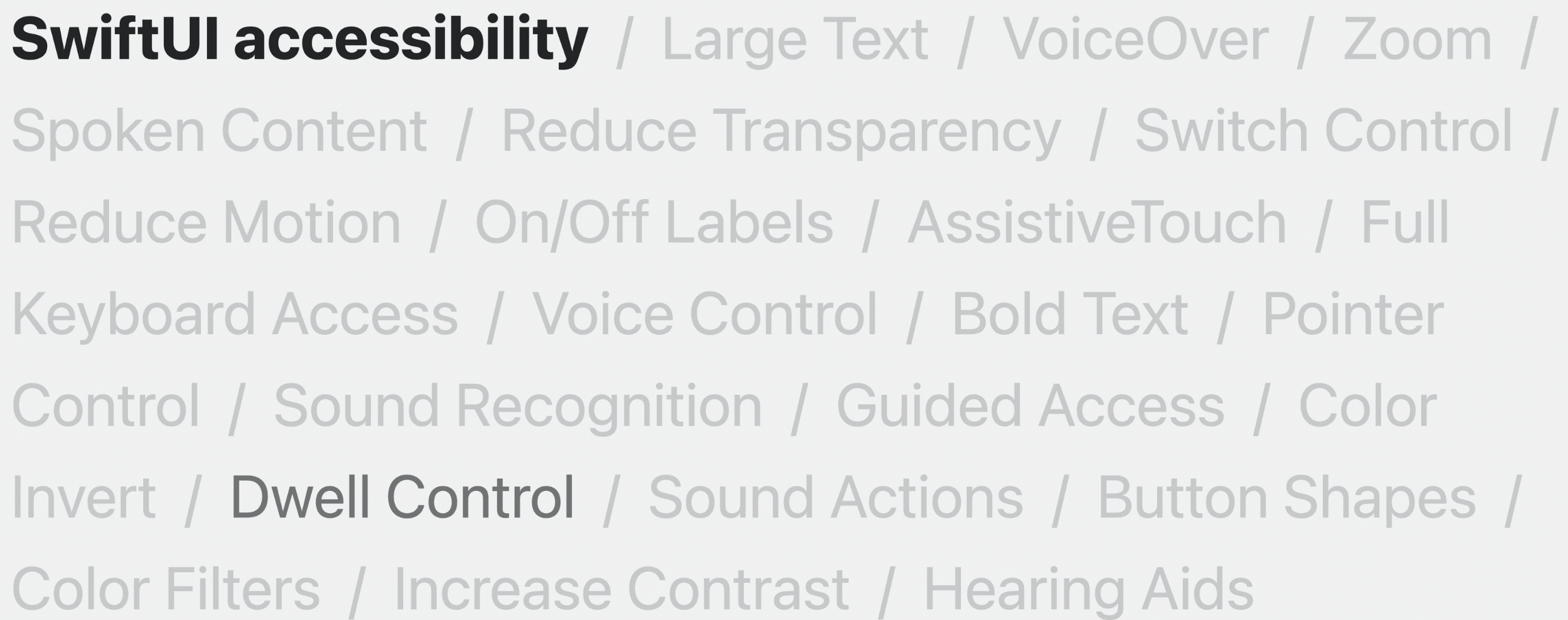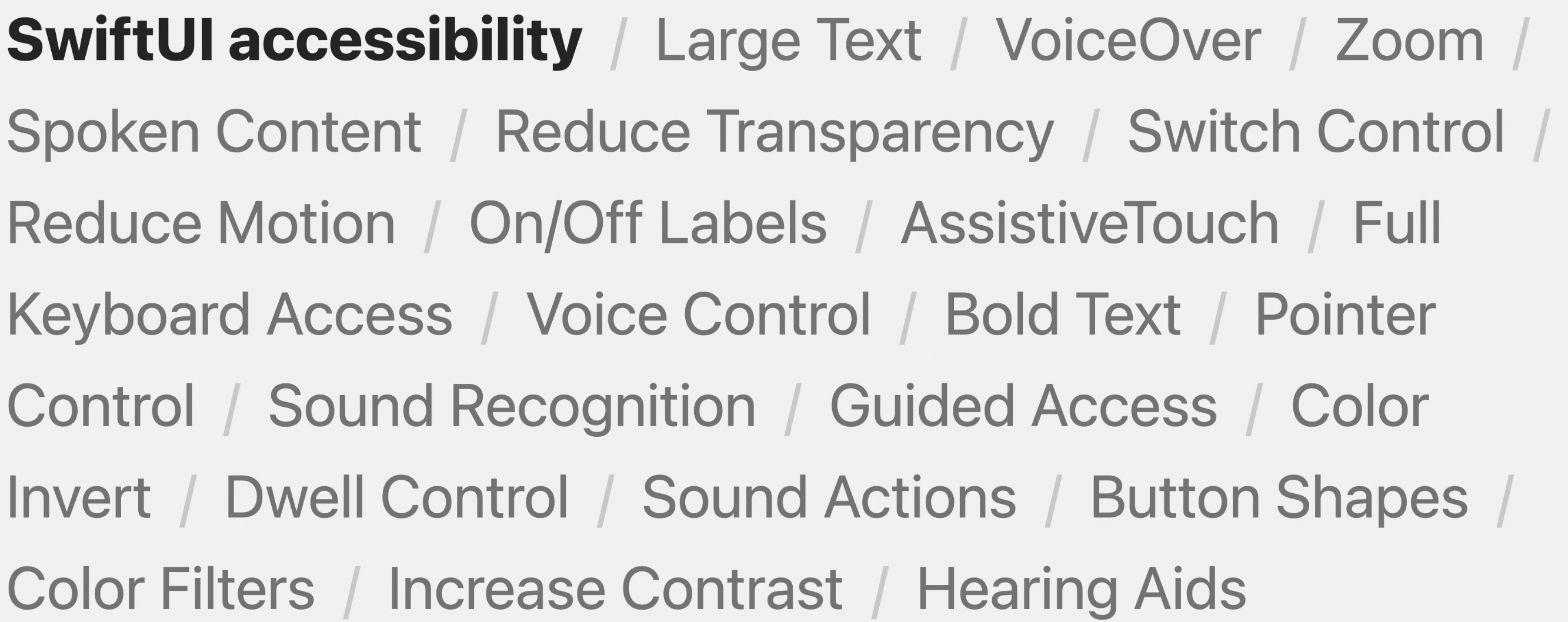 그리고 VoiceOver와 Switch Control과 같이 다른 플랫폼에서도 사용가능한 Accessibility도 지원한다.