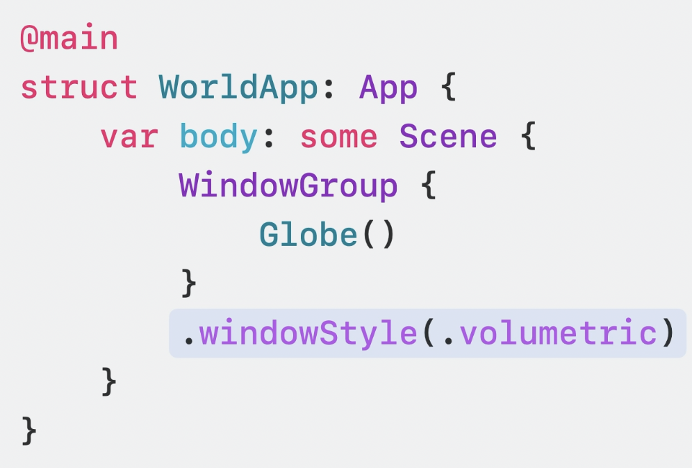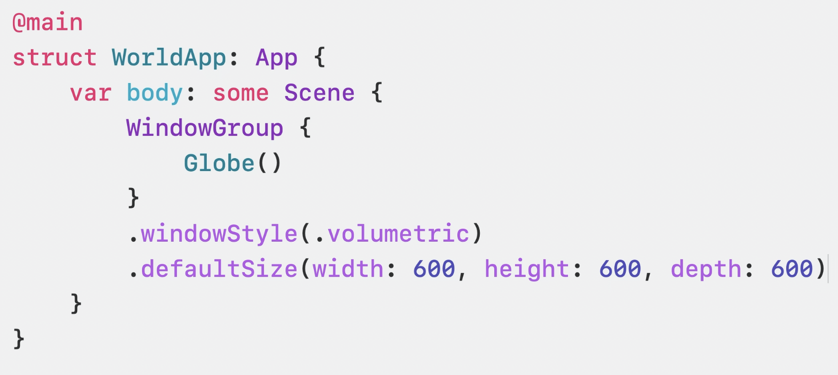 앱에 volume을 추가하기 위해서는 간단히 volumetric widow style을 추가해주면 된다.