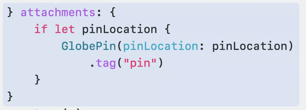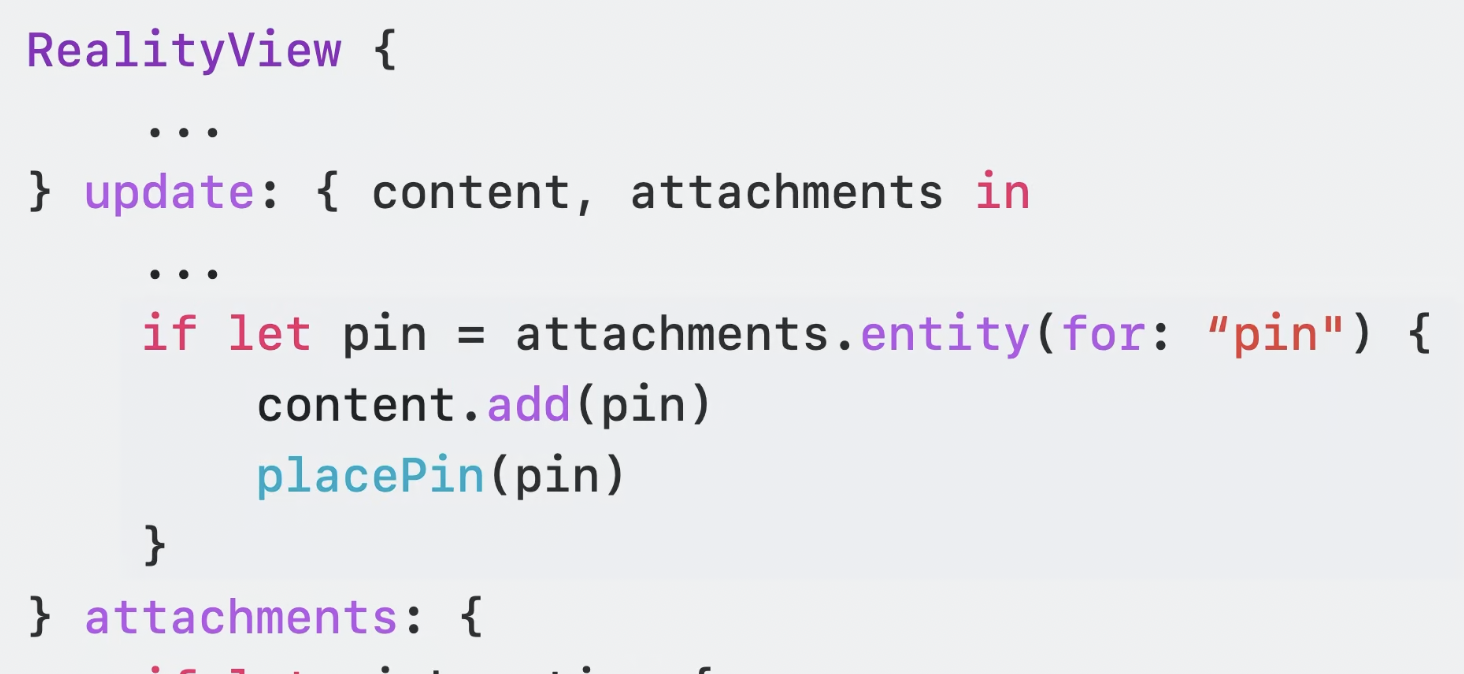 여러 SwiftUI view들을 attachments closure안에 추가할 수 있으며 이 뷰를 RealityKit entity로써 RealityView 어디든 배치할 수 있게 된다.