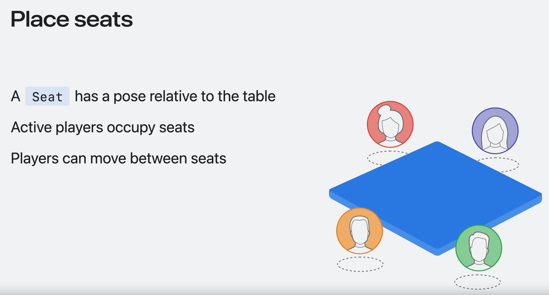 Seat는 테이블의 원점을 기준으로 배치된다. 한 시트는 한 번에 한 플레이어만 할당될 수 있다.