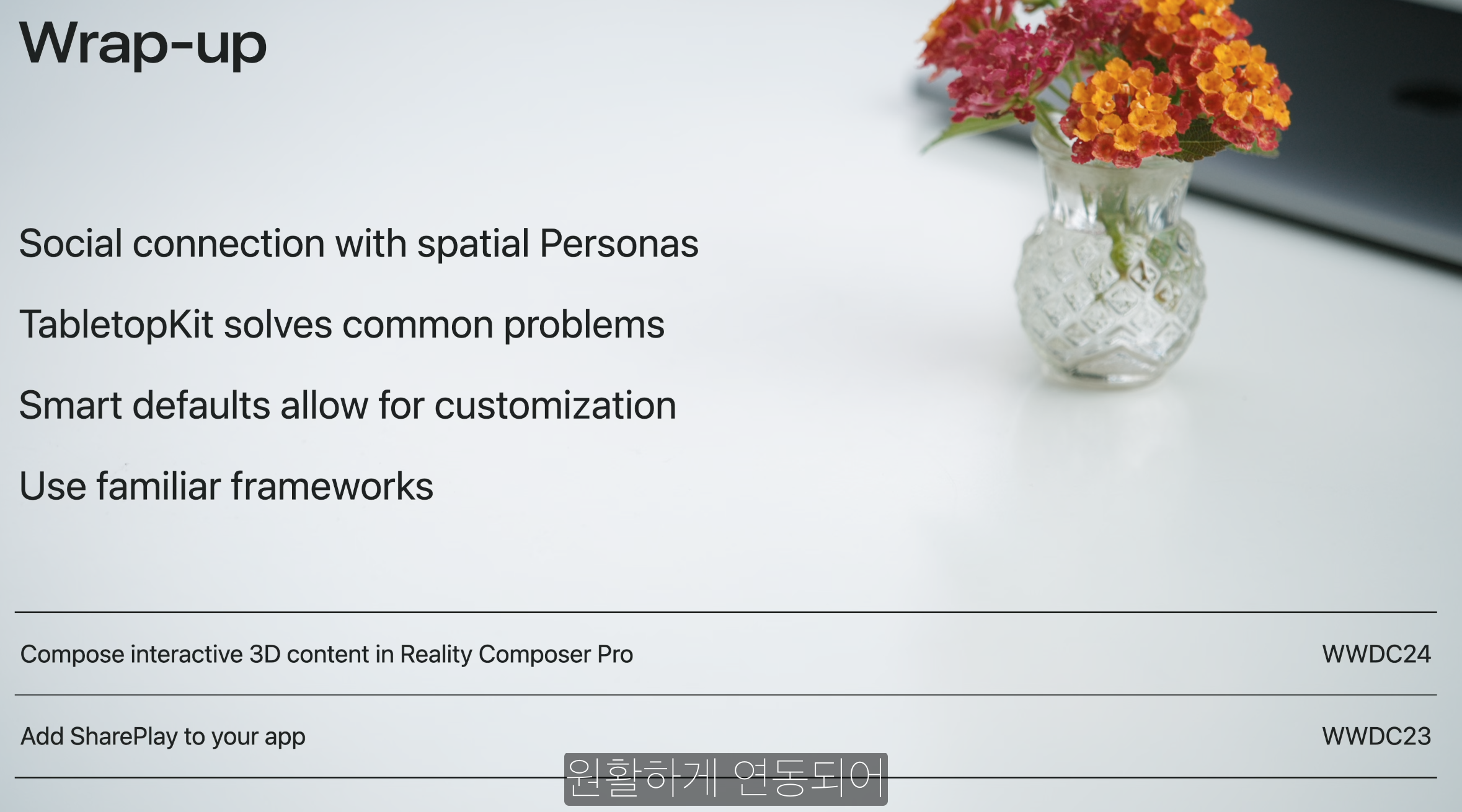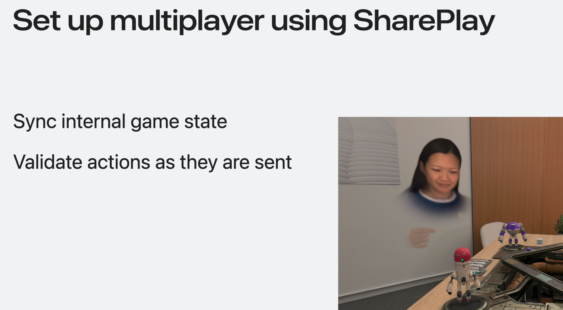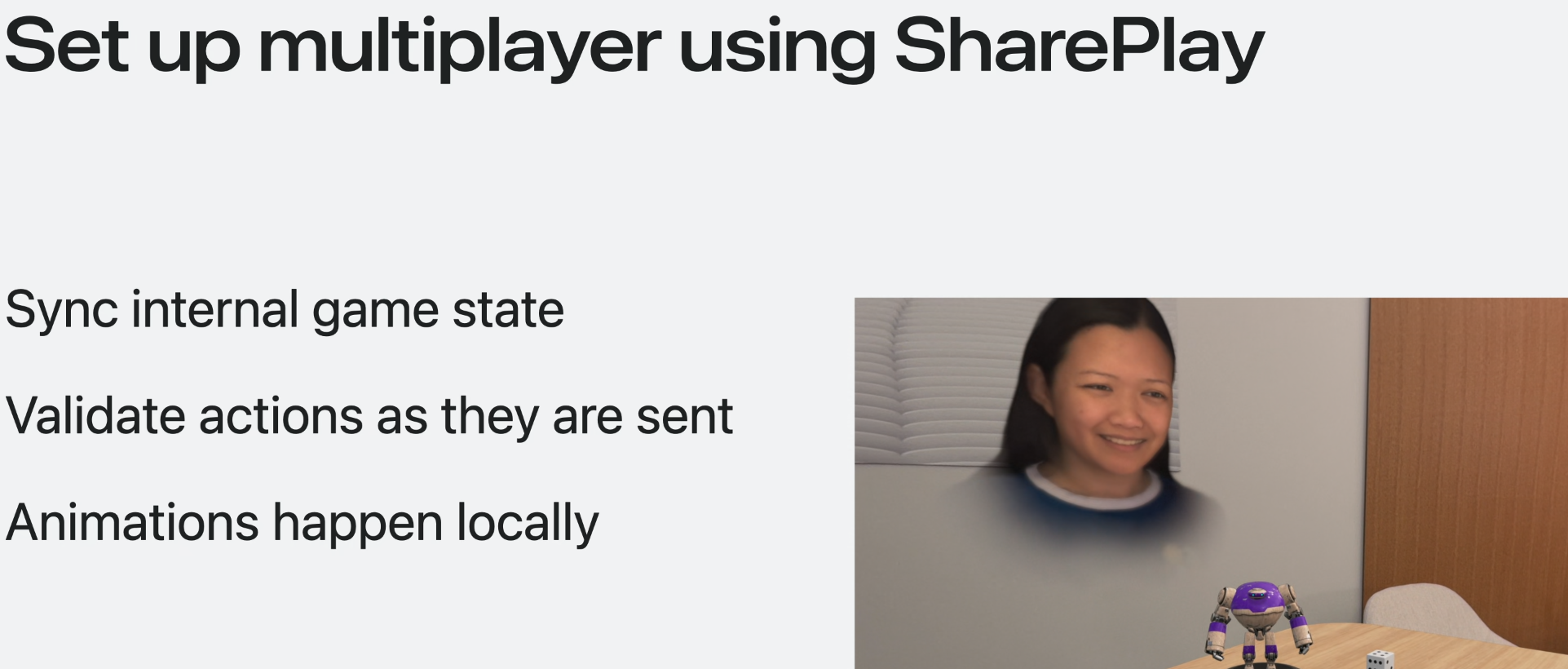 TabletopKit은 GroupActivities나 RealityKit과 같이 잘 알려진 프레임워크에 자연스럽게 연동된다. 코드 몇줄로 원활한 네트워킹과 gorgeous rendering을 추가할 수 있다.