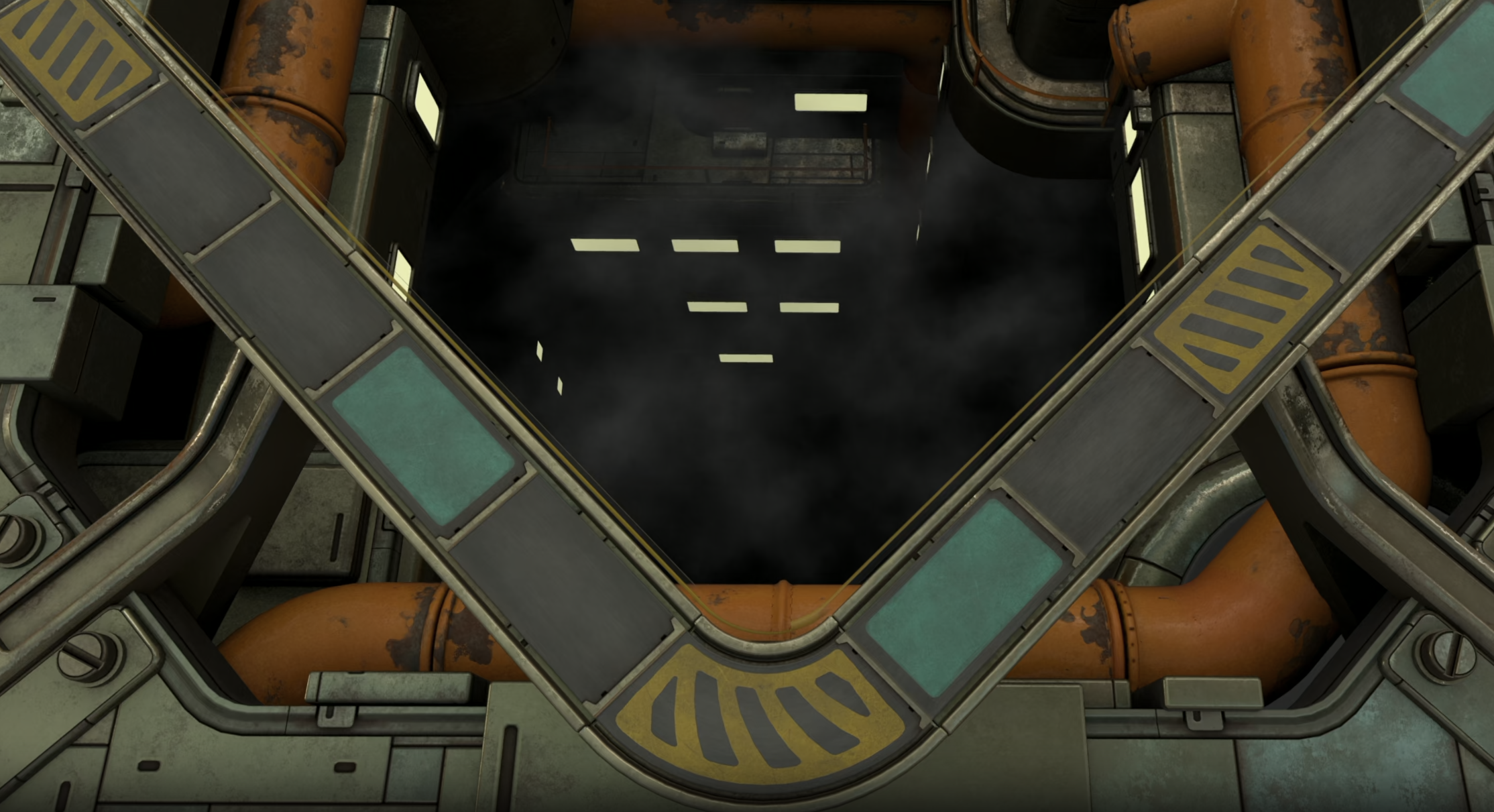 떠 있는 컨베이어 벨트가 게임 보드의 역할을 하고 보드 위의 타일에서 말들이 움직인다.