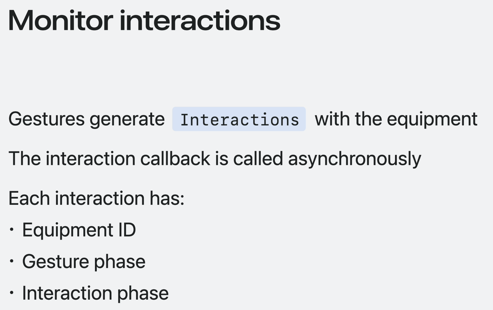 system gesture는 TabletopKit interaction을 생성한다. 제스처가 변할 때마다 TabletopKit이 interaction callback을 호출한다.