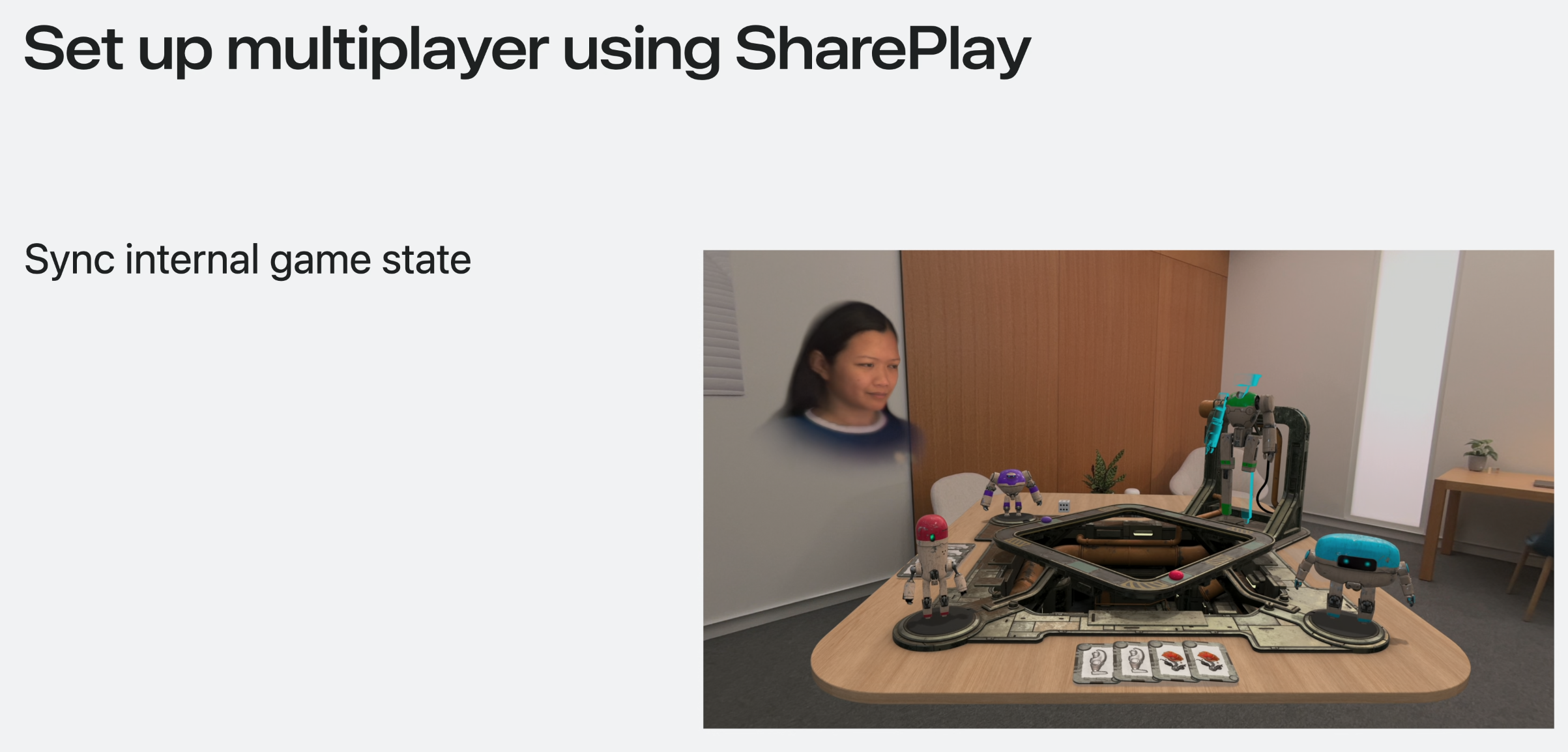 Spatial Persona를 통해 한 방에 있지 않더라도 친구 또는 가족과 함께 게임을 플레이 할 수 있다.