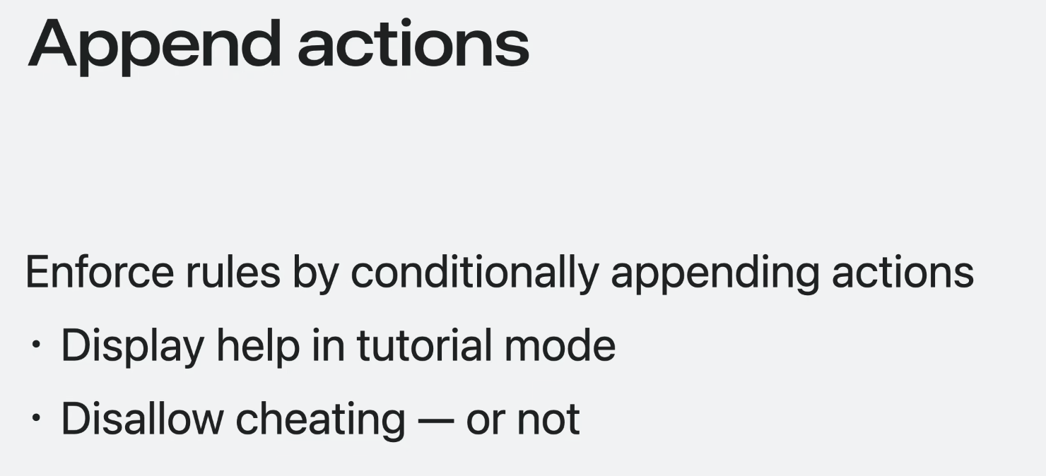 Action은 게임 상태에 적용되는 개별 동작으로 사물을 새 그룹으로 이동하거나 카드를 뒤집는 동작 등이다.