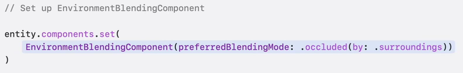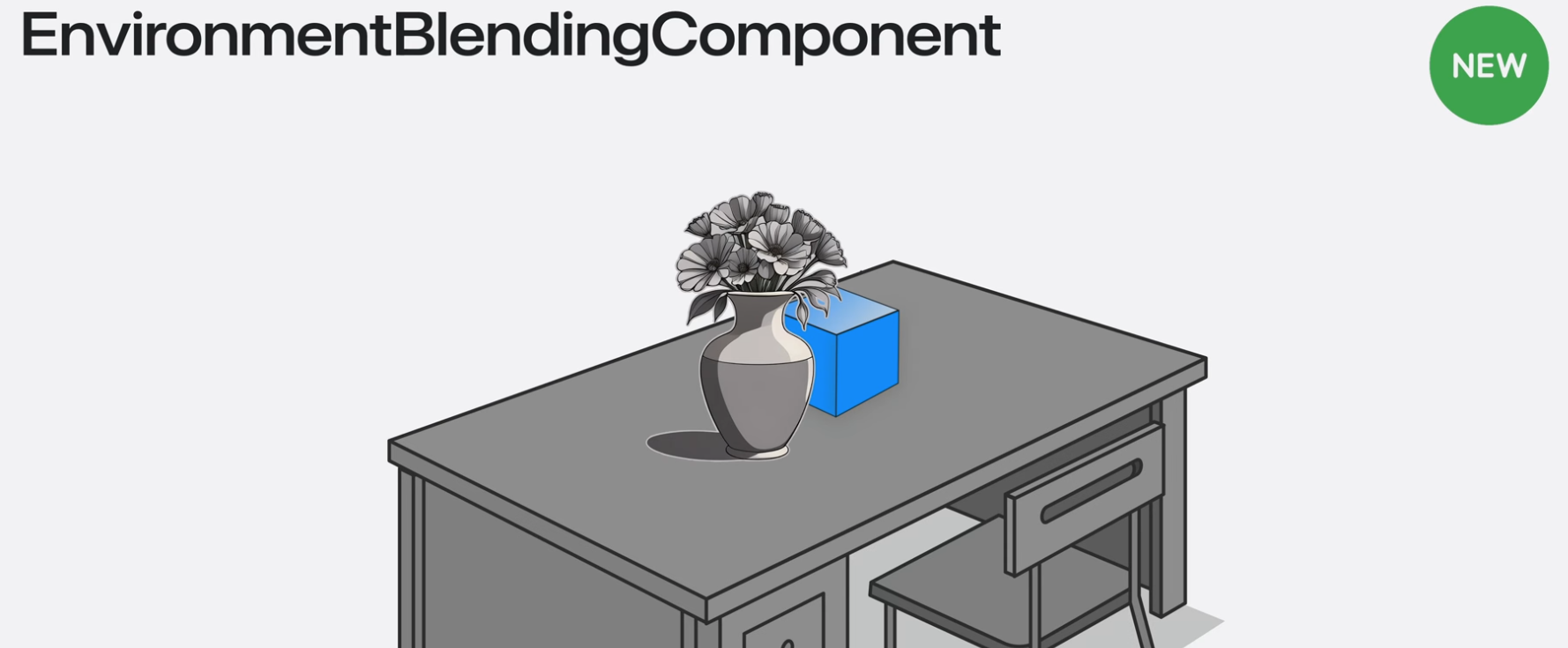 EnviornmentBlendingComponent는 몰입형 공간 용으로 설계된 새로운 component이다. 이 컴포넌트로 entity를 정적인 현실 객체로 숨길 수 있다.