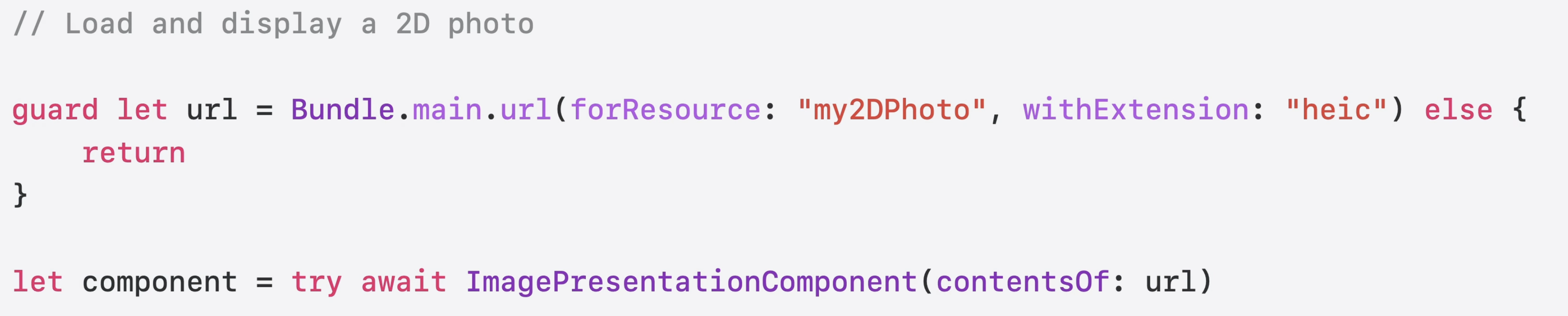 이미지 URL에서 ImagePresentationComponent를 직접 초기화하지 말고, URL에서 Spatial3DImage를 만들고 spatial 3D image를 사용하여 ImagePresentationComponent를 초기화할 수 있다.