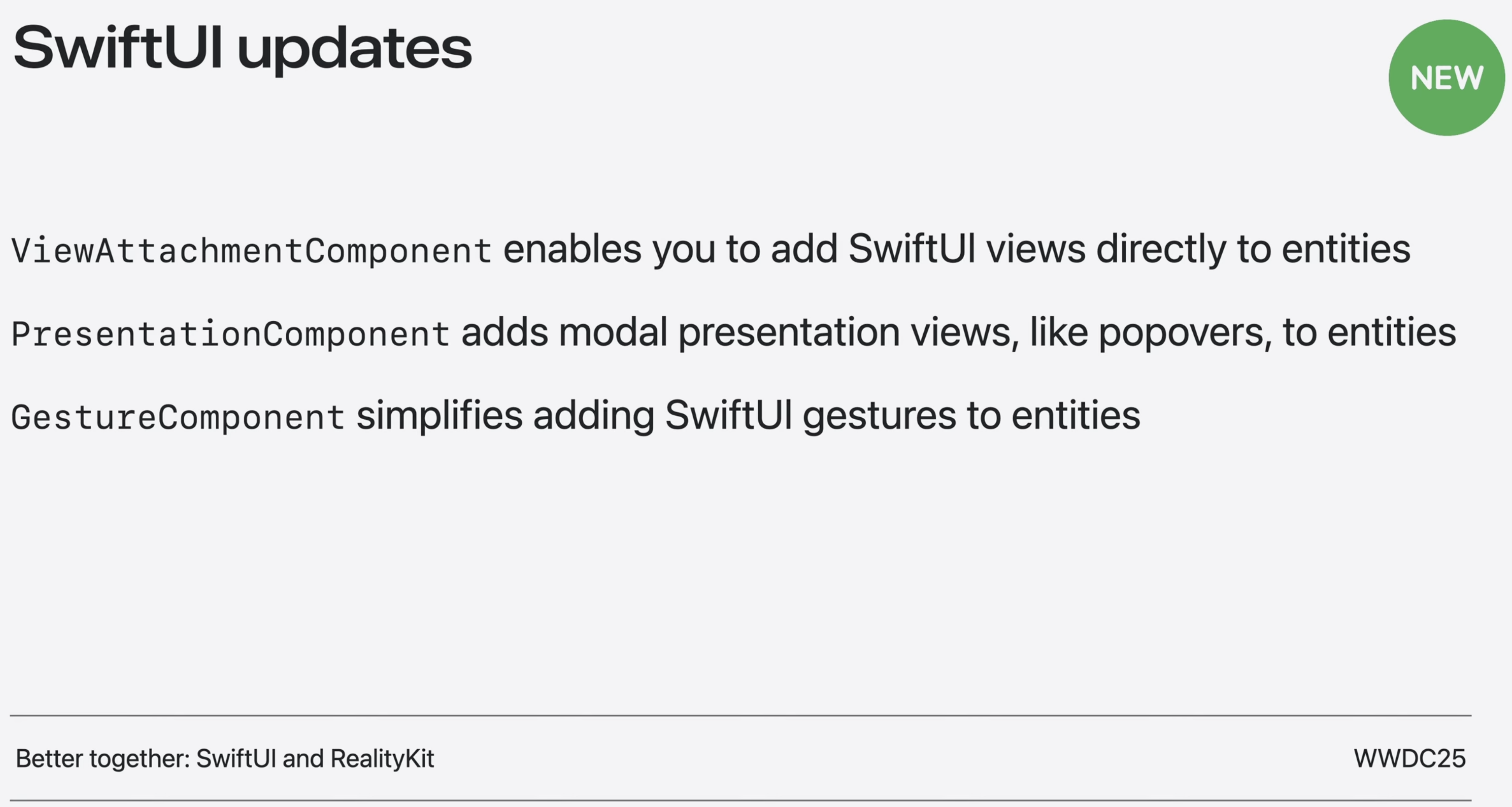 ViewAttachmentComponent를 통해 SwiftUI 뷰를 엔터티에 직접 추가하는 것이 매우 간편해졌다.