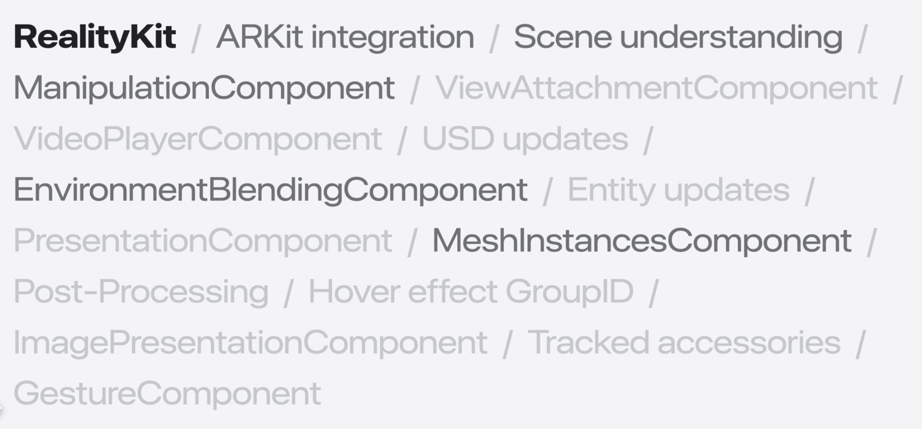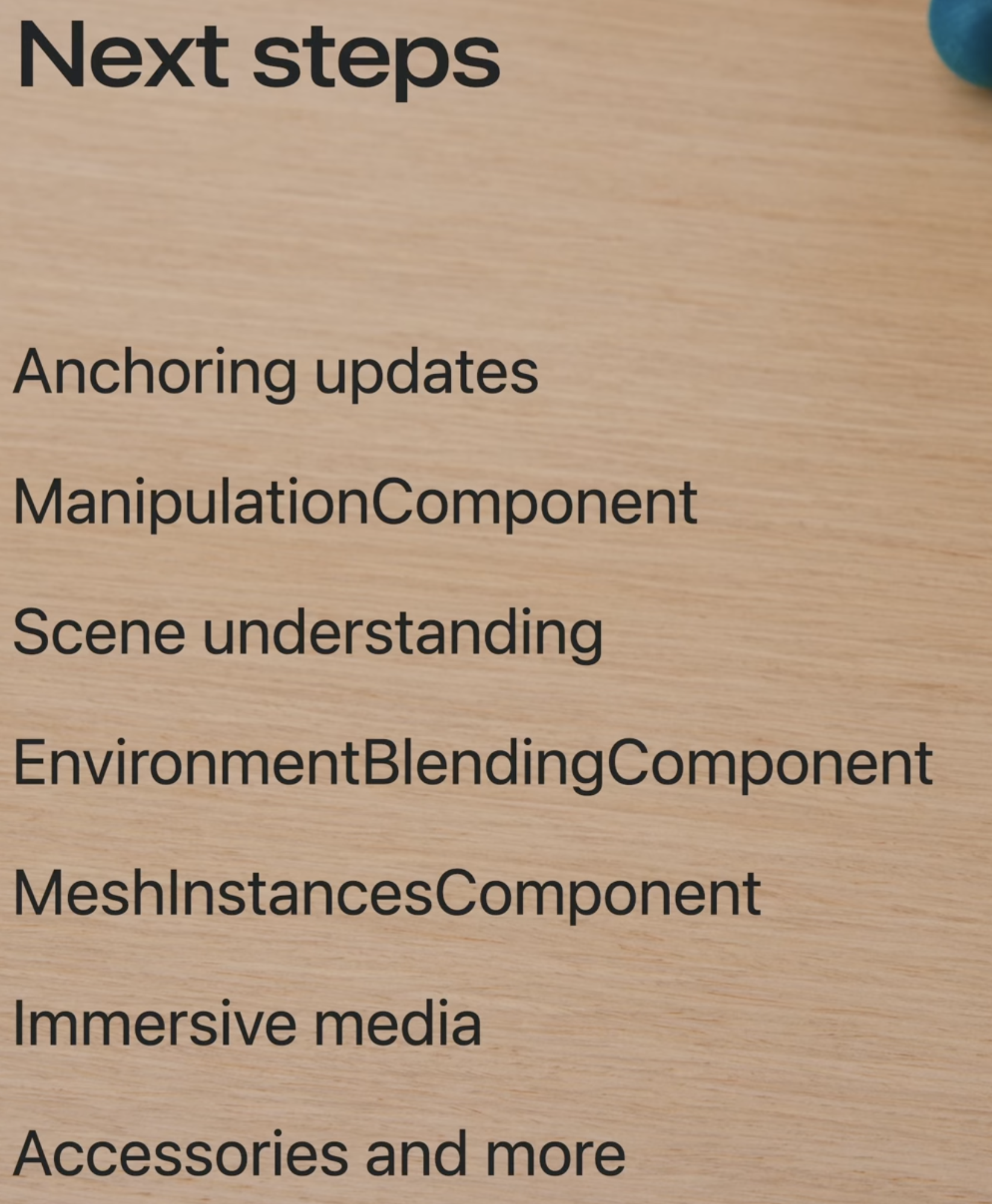 2019년에 RealityKit을 출시하며 앱에 3D 콘텐츠를 통합하고 사실적인 렌더링을 제공하여 몰입형 경험을 향상시켰다. RealityKit은 3D 콘텐츠가 실제 환경과 완벽하게 조화를 이룰 수 있는 다양한 기능을 제공하여 visionOS에서 몰입형 앱과 게임을 만들 수 있다.