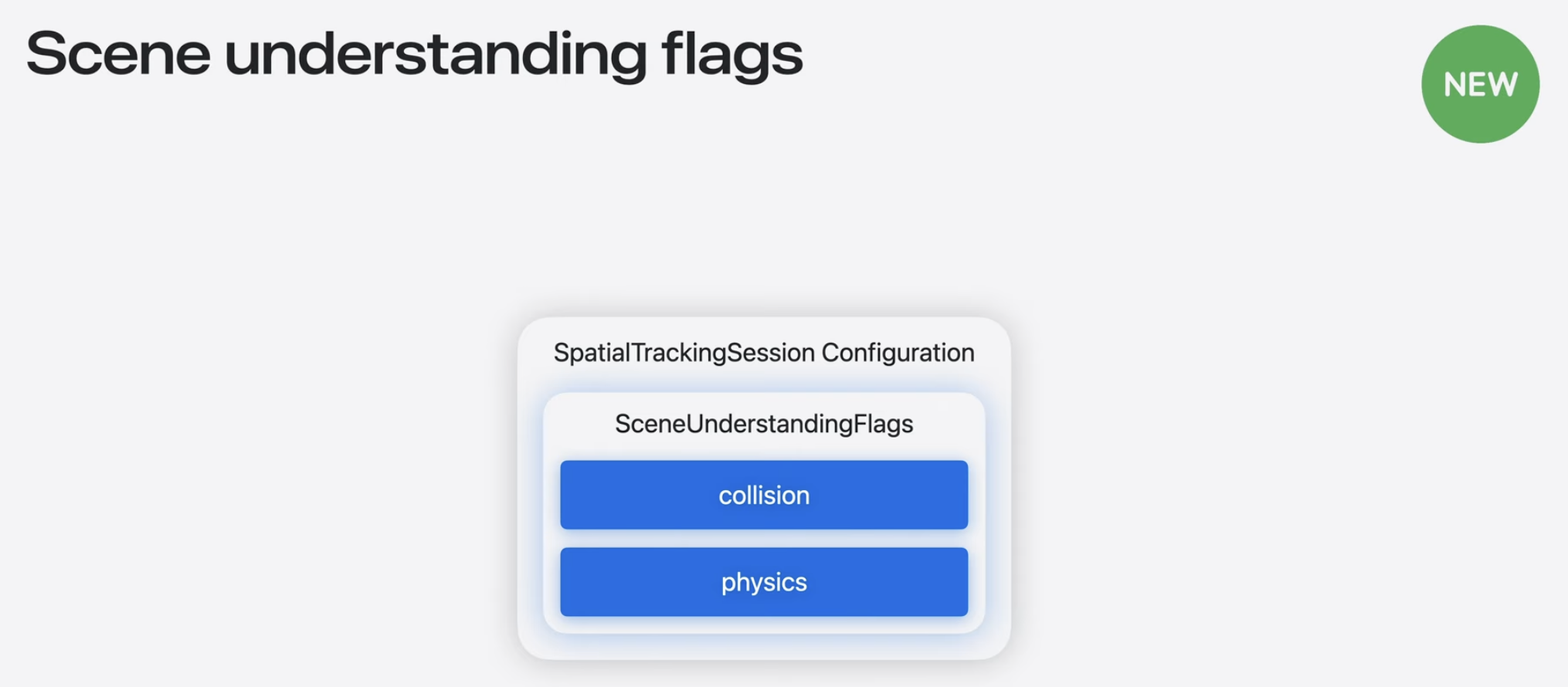 SpatialTrackingSession에서 SceneUnderstandingFlags를 설정하여 실제 세계 주변의 장면 이해 메시를 활용할 수 있다.