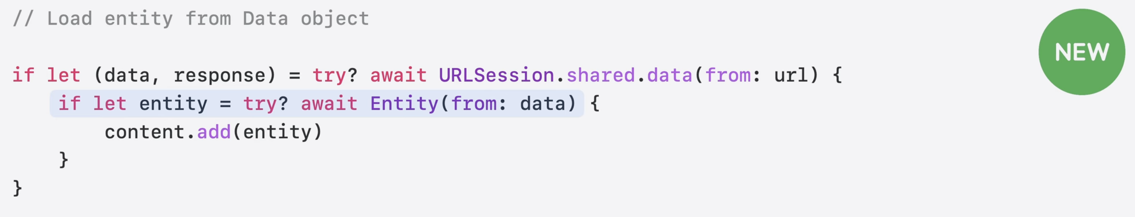 또한, 메모리 데이터 객체에서 엔터티를 로드할 수 있는 새로운 엔터티 initializer도 있다. 이 새로운 initializer를 사용하면 온라인 소스에서 전체 RealityKit 장면이나 USD를 로드하거나 네트워를 통해 스트리밍 할 수 있다.