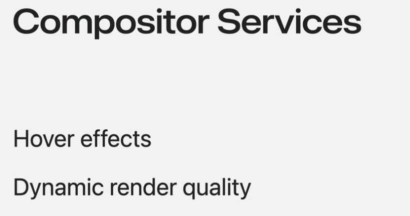 Compositor Services에 두 가지 새로운 기능을 추가했는데, hover effect와 dynamic render quality이다.