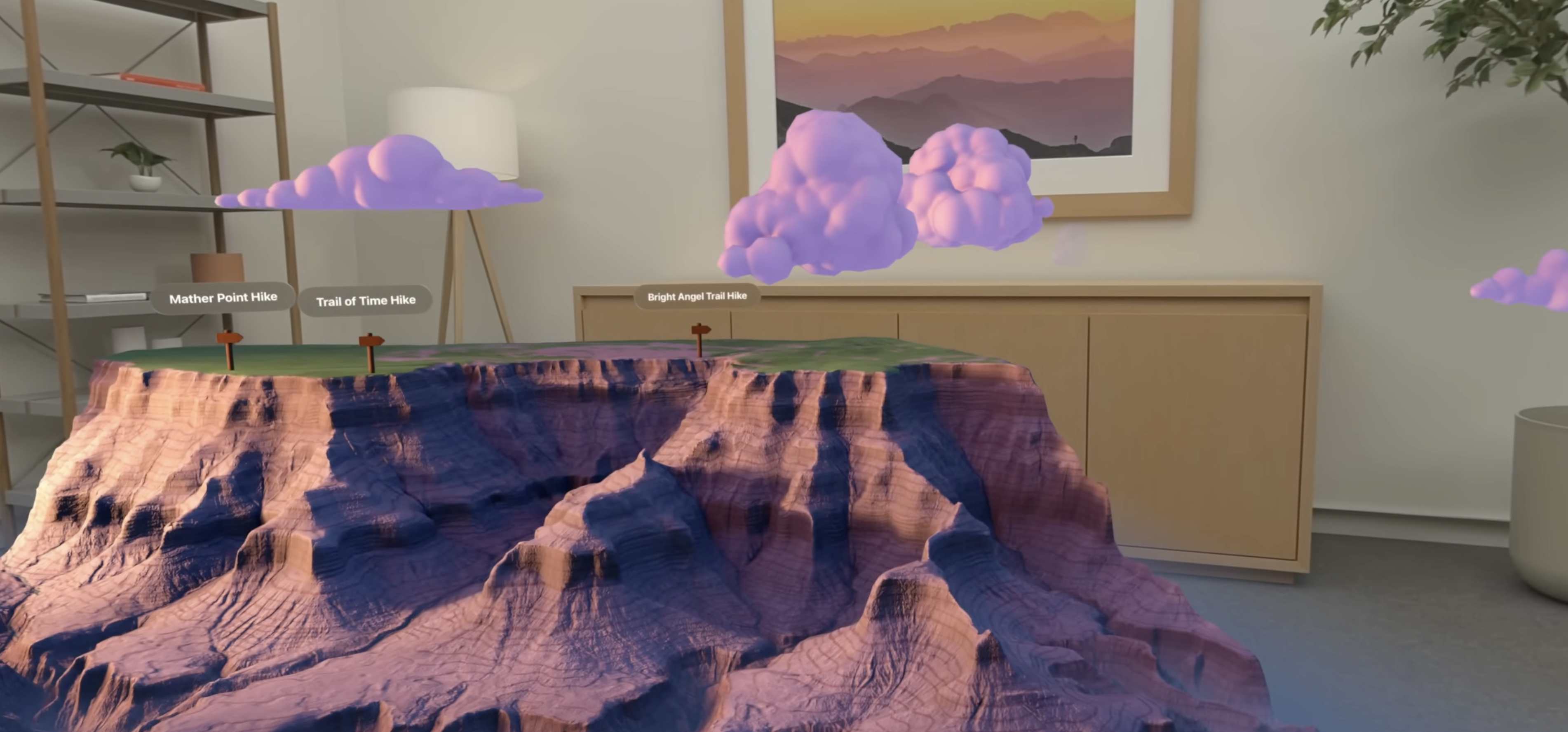 virtual objcet와의 상호 작용은 현실 세계를 모방하여 자연스럽게 느껴져야 한다. 이제 마치 실제 물건을 쥐고 있는 것처럼 직관적으로 물체를 회전시킬 수 있다. Quick Look과 통합해서 공간 내에서 3D 콘텐츠를 조작하고 위치를 조정하는 작업이 훨씬 더 원활하게 이루어진다. (04:55)