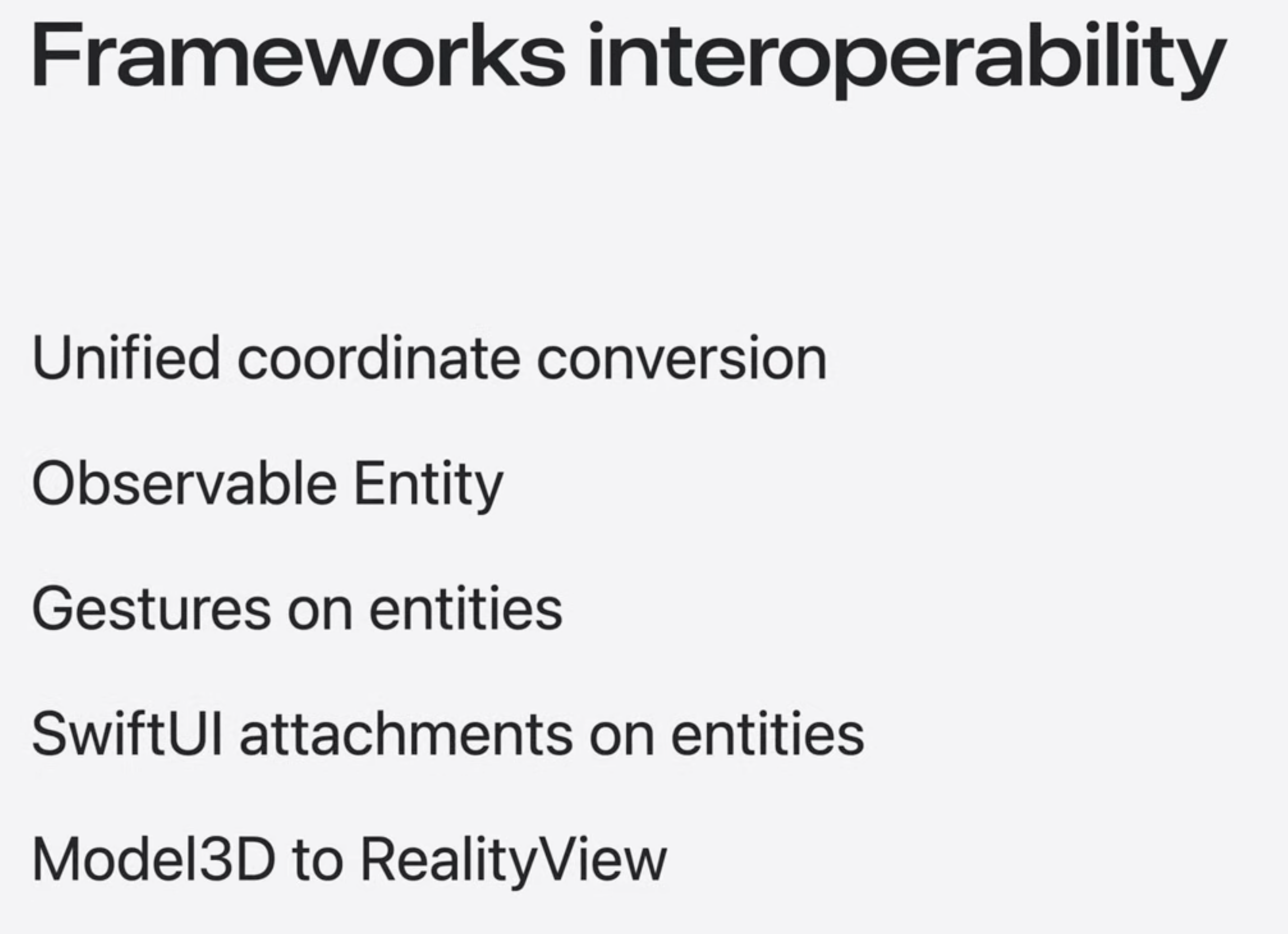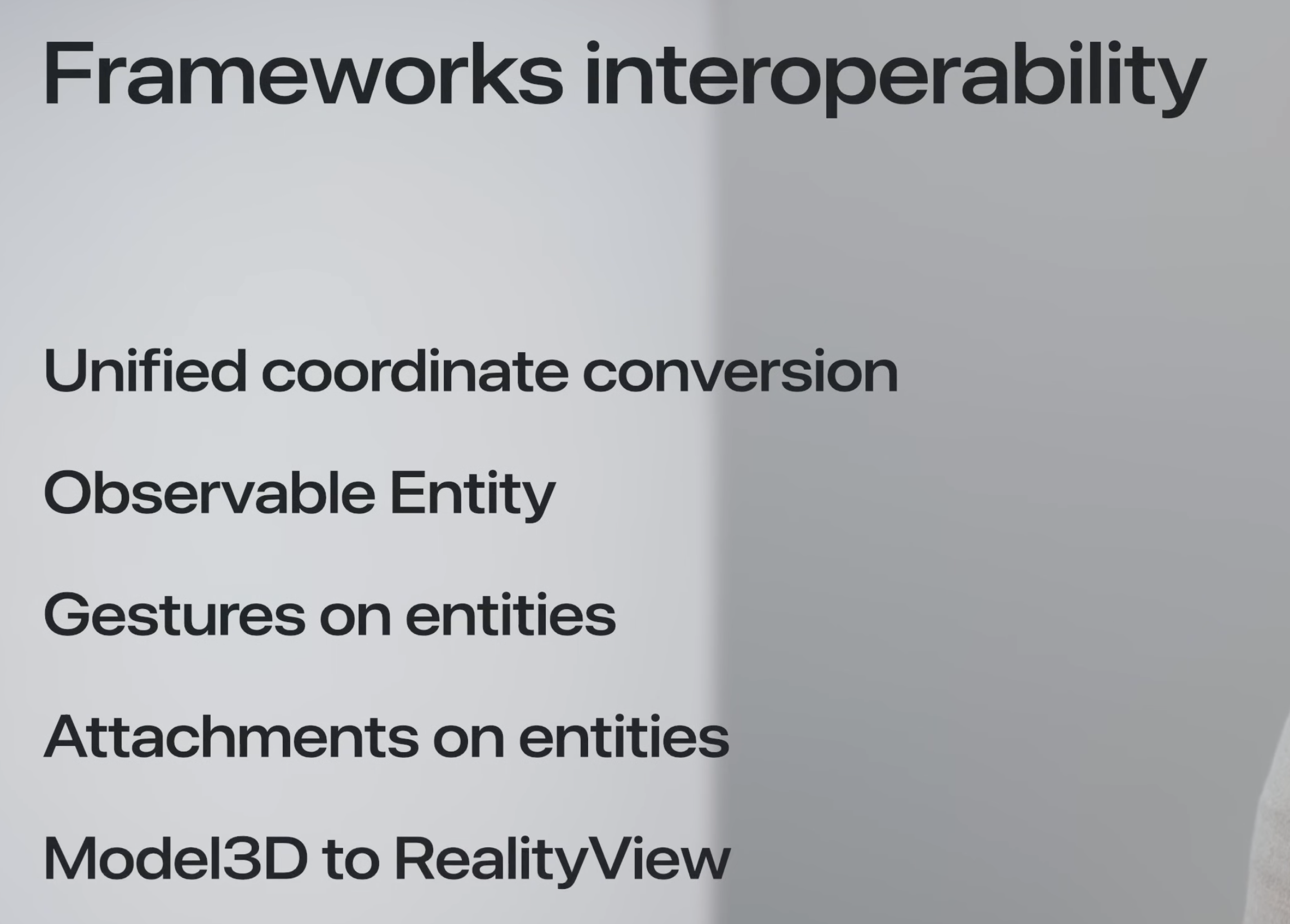 이를 통해 SwiftUI, RealityKit, ARKit의 좌표 공간에서 빌드 할 때 콘텐츠 배치가 대폭 간소화 된다.