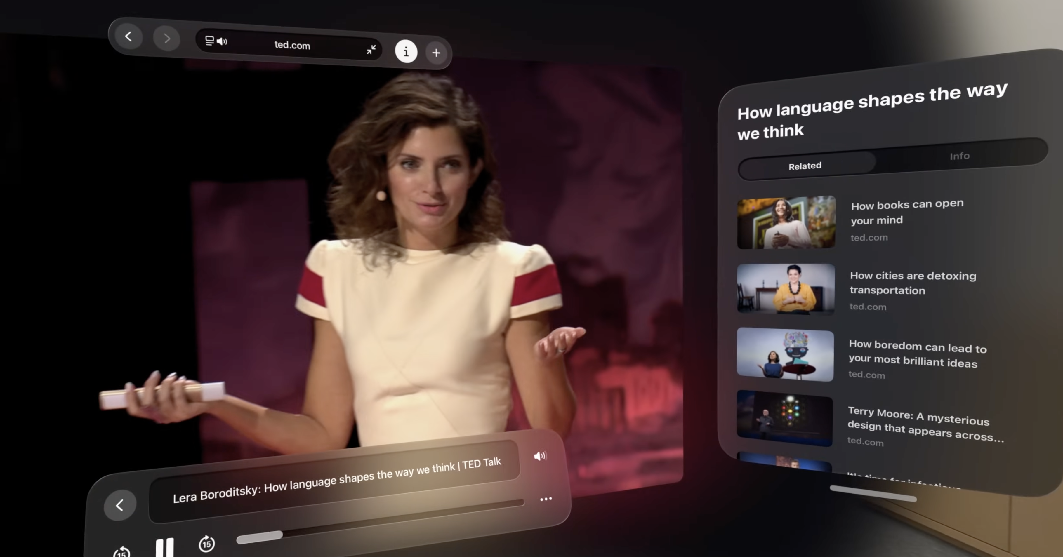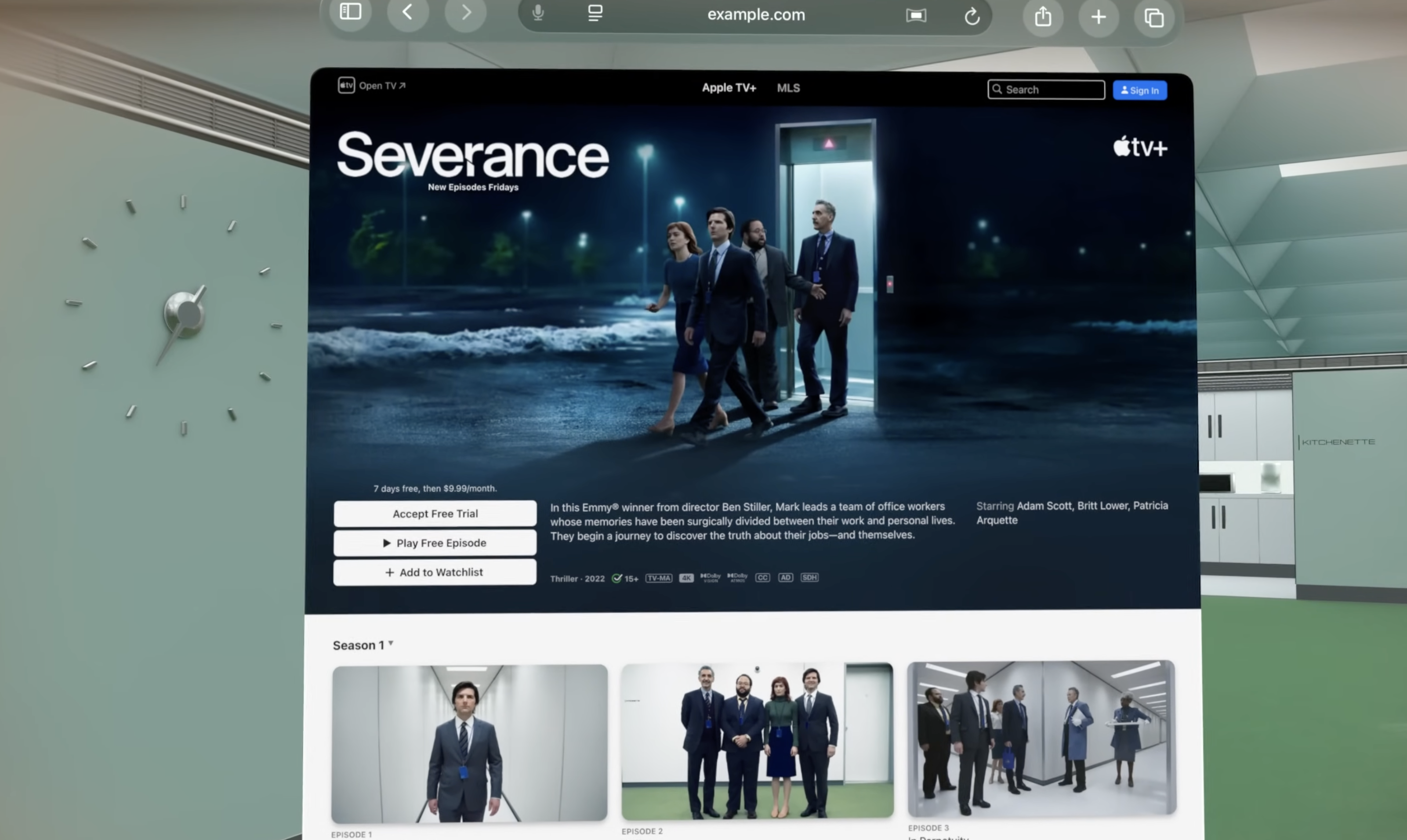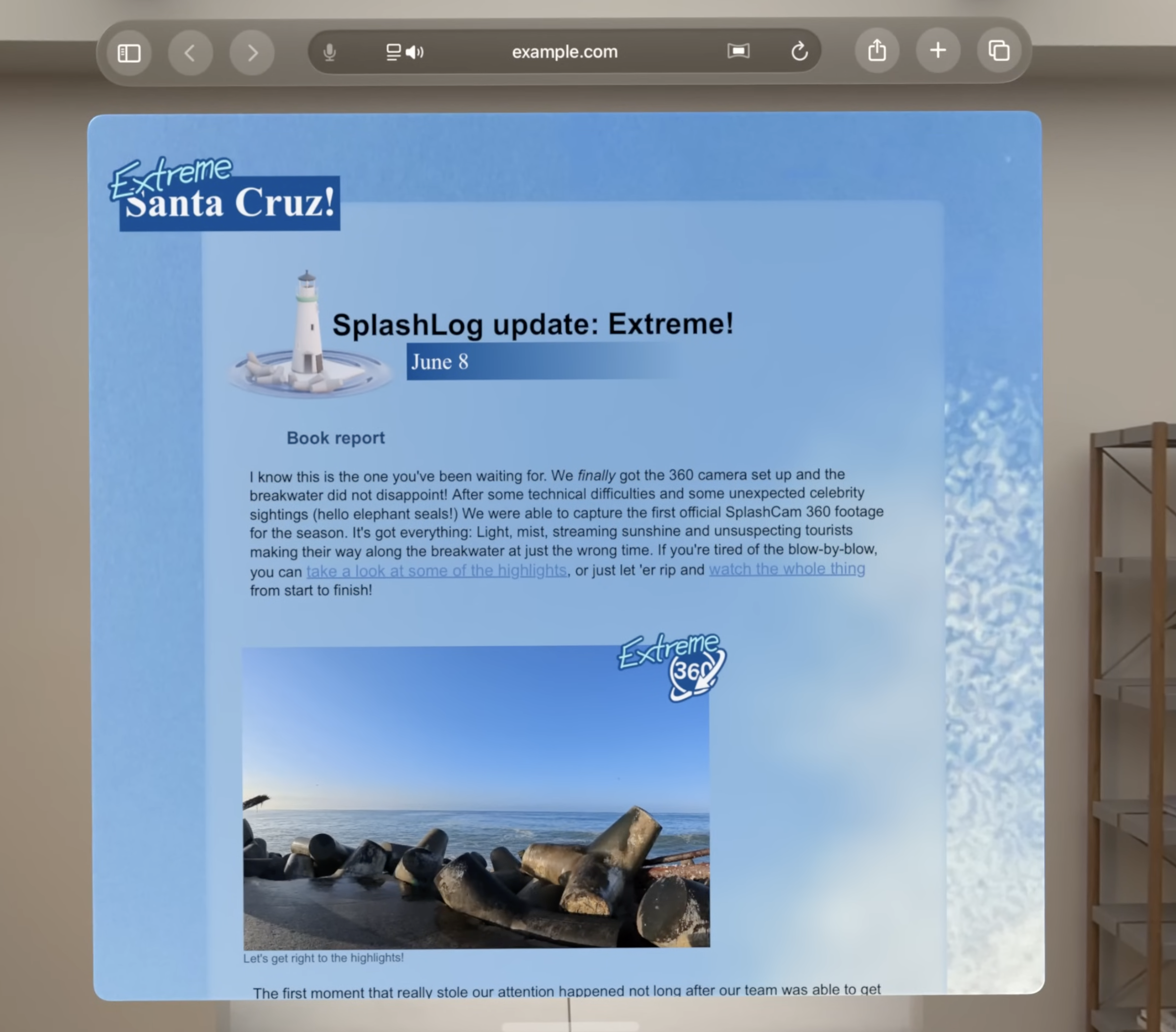 사파리에서 공간 이미지를 표시하는 것 외에도 기존 HTML 비디오 element를 사용하여 웹 페에지에 Apple Immersive Video를 포함한 모든 지원 형식을 사용하여 공간 비디오를 추가하여 전체 화면으로 전환할 때 몰입감 있게 공간 콘텐츠를 즐길 수 있다.