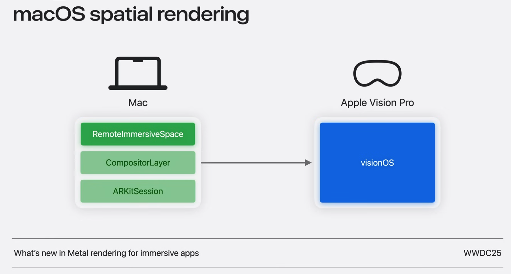 Compositor Services와 ARKit은 이제 Mac에서 사용할 수 있으며 새로운 Remote Immersive Space SwiftUI scene type과 함께 사용할 수 있다.