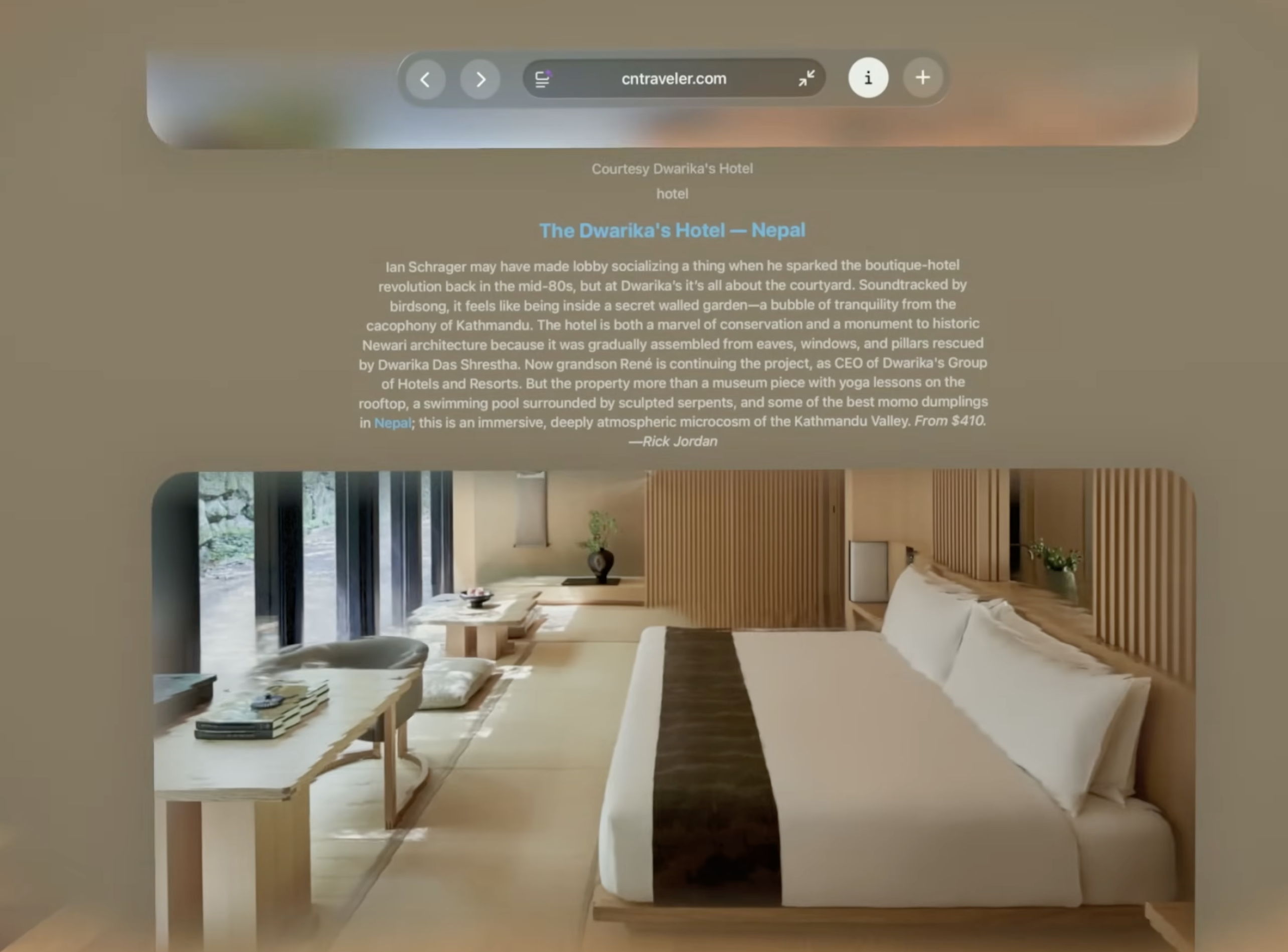 공간 탐색 버튼을 선택하면 스크롤 할 때마다 생동감이 넘치는 inline 공간 미디얼르 볼 수 있도록 웹 페이지를 변환할 수 있다. iOS, macOS에서 브라우징 버튼 리더 모드로 전통적으로 볼 수 있던 모든 페이지는 safari를 벗어나지 않고도 전체 화면으로 전환되어 주변에 표시된 공간 미디어를 볼 수 있다.