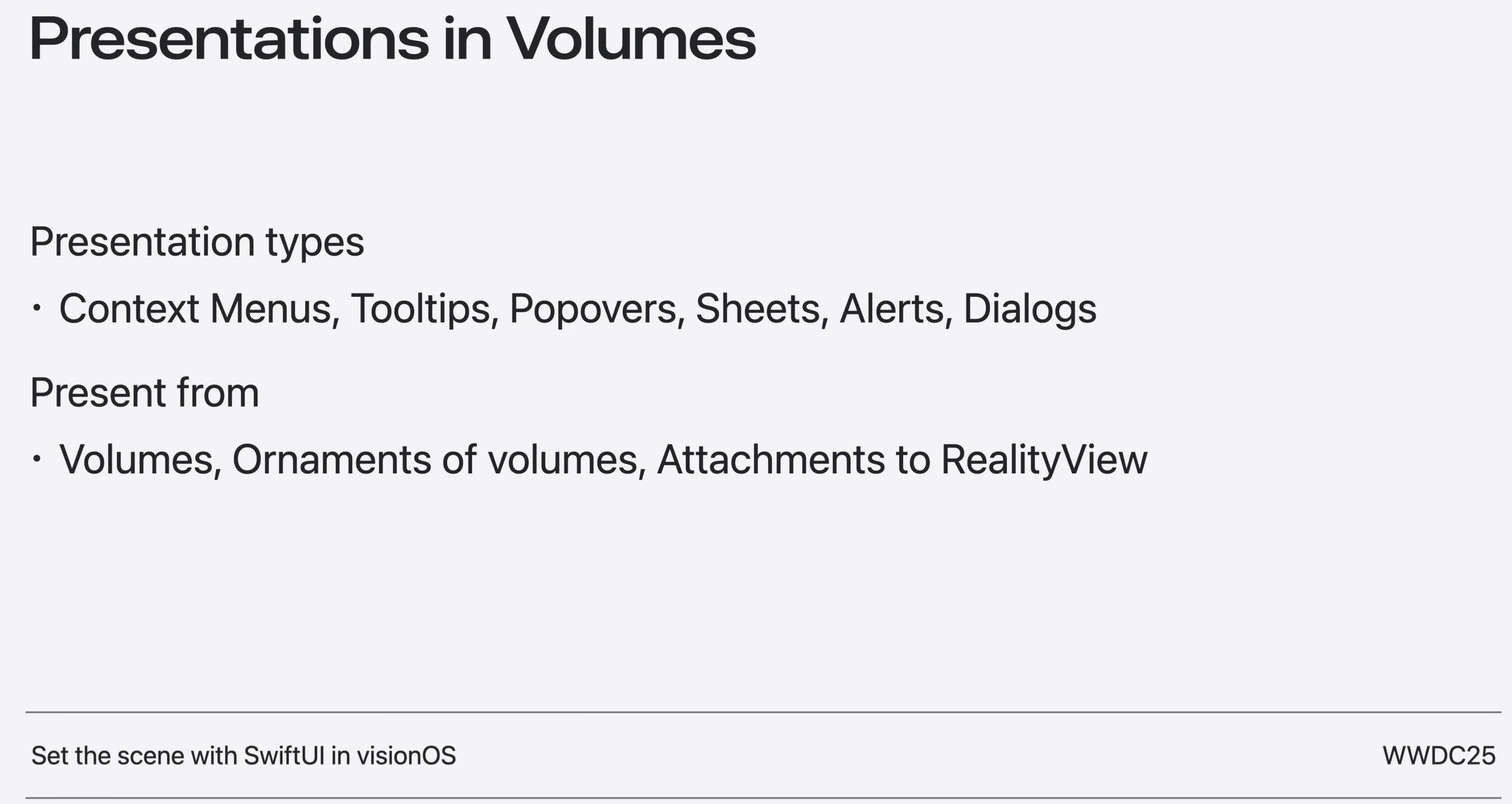 알림, 시트, 메뉴, 팝오버도 볼륨 내부와 볼륨 위에 표시하는 것이 가능해졌다.