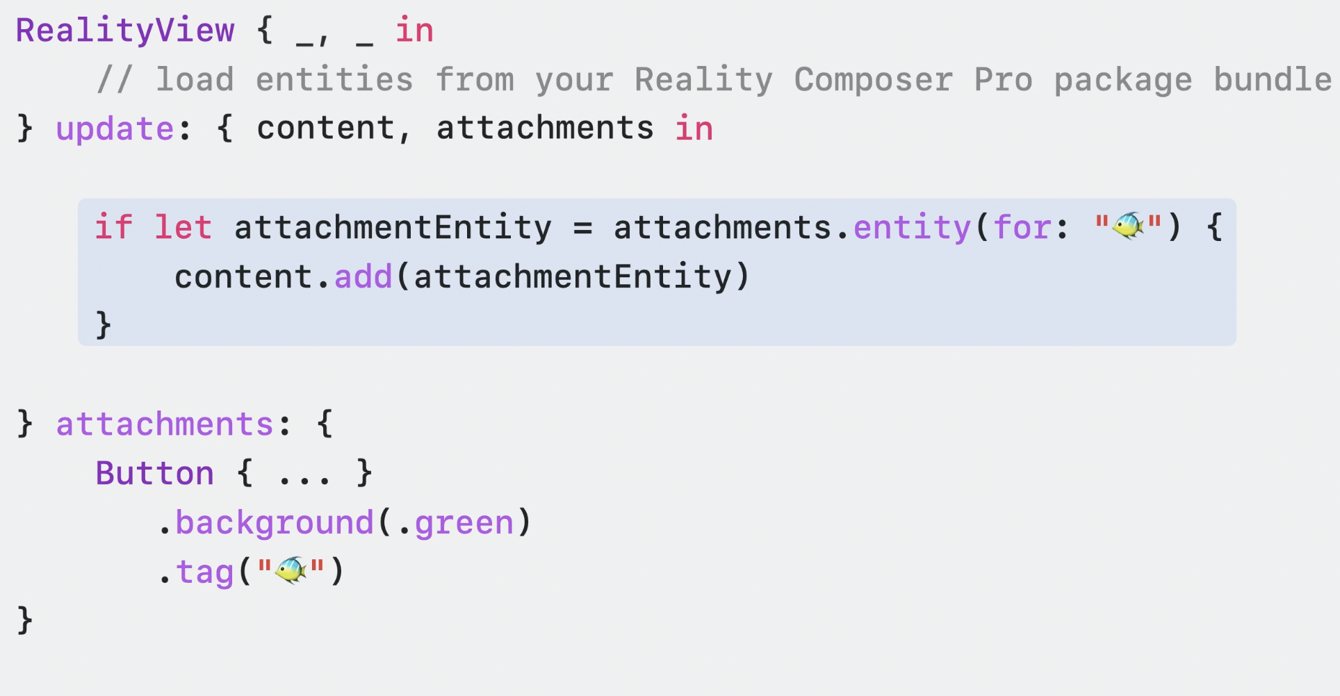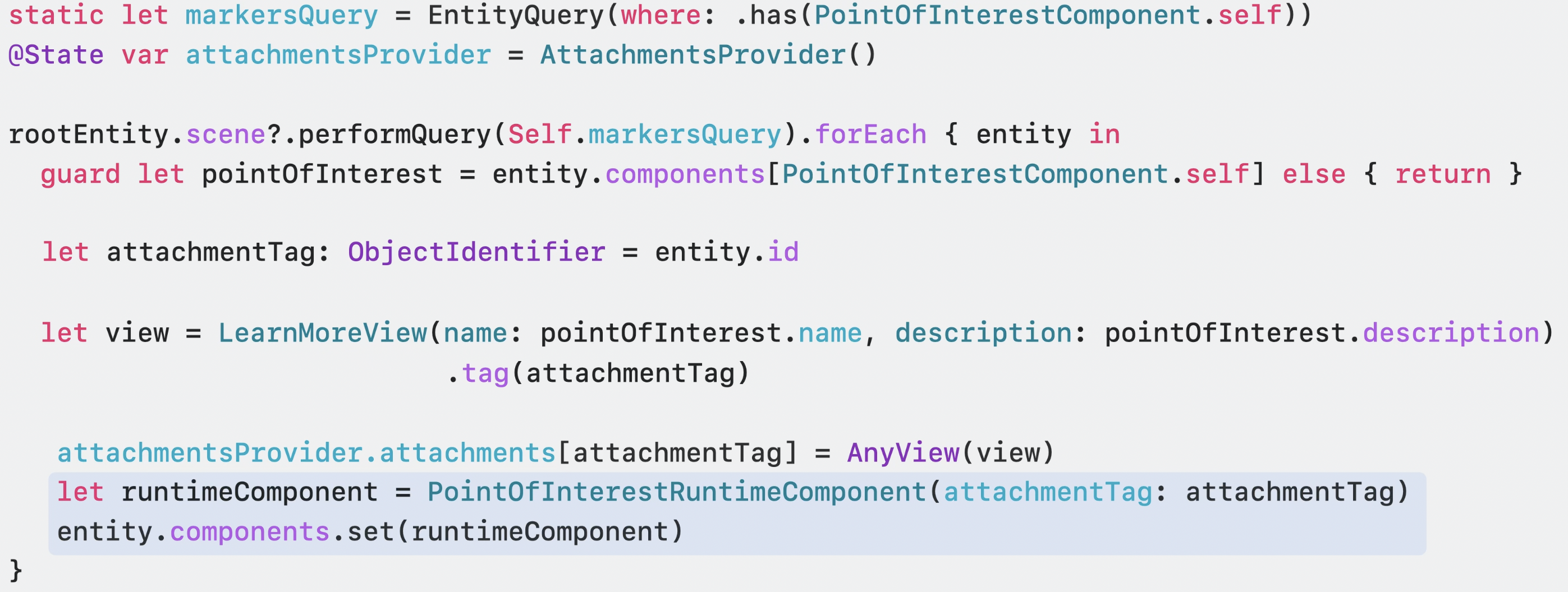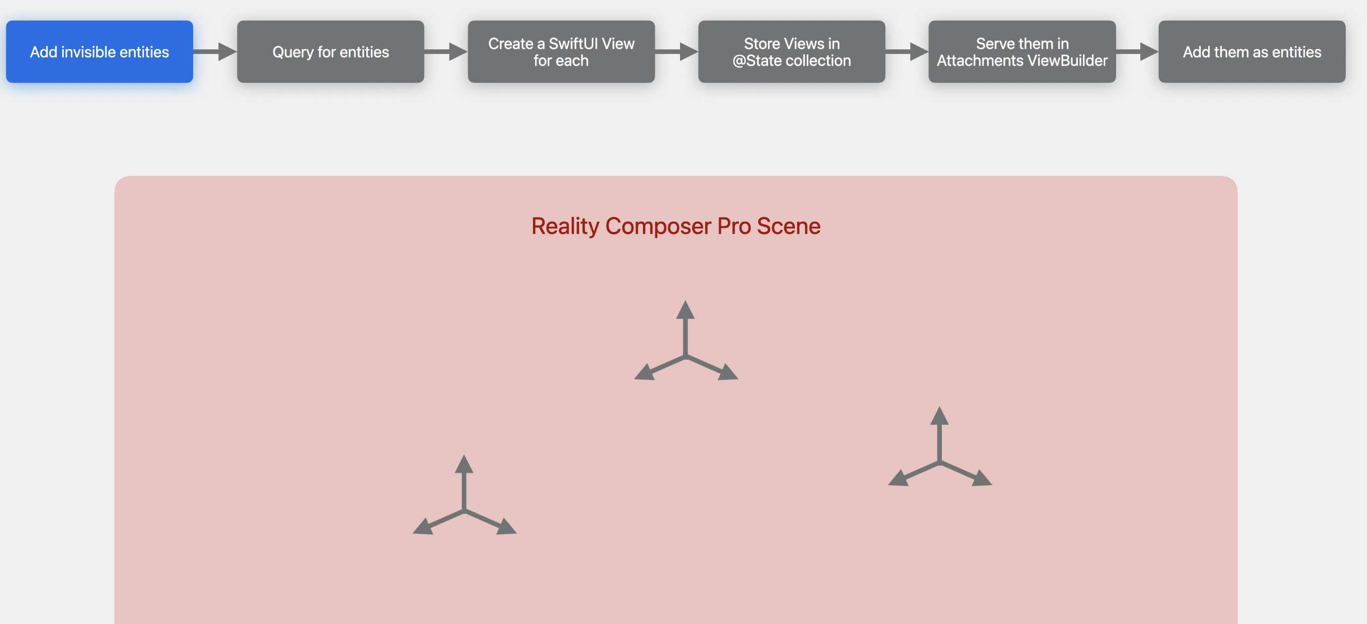 Attachment entity는 당신에 의해 생성되지 않고 attachments ViewBuilder에서 만든 attachment view에 대해 RealityView가 생성한다 .