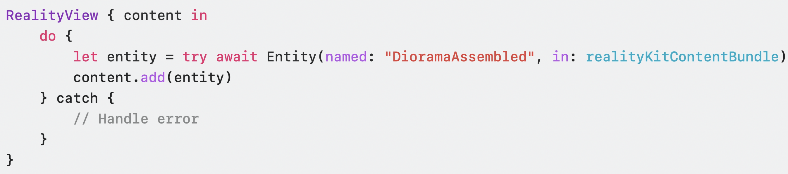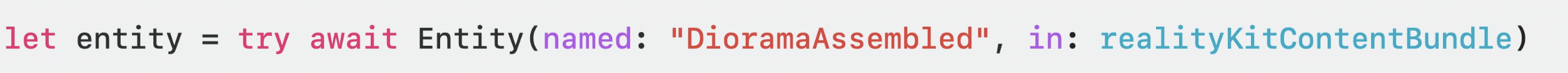Entity의 비동기적인 initializer를 사용하여 Reality Composer Pro package로부터 entity를 생성한다.