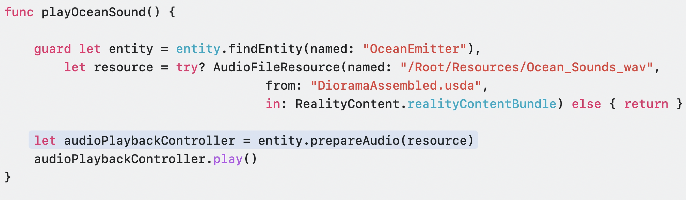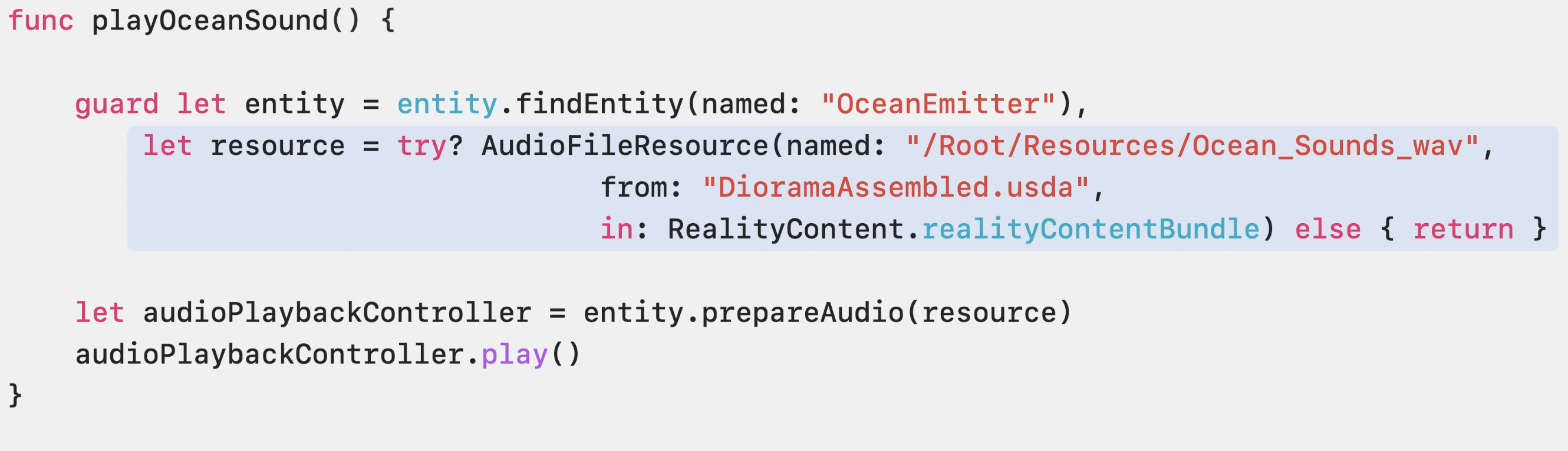 Reality Composer Pro에서 설정한 오디오의 재생 방법을 알아본다.