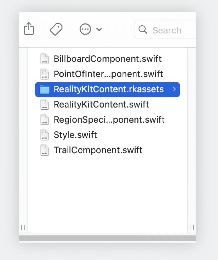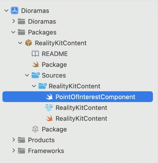 Reality Composer Pro는 Swift package이며 우리가 만든 것에 대한 Swift 코드는 package 안에서 확인 할 수 있다.