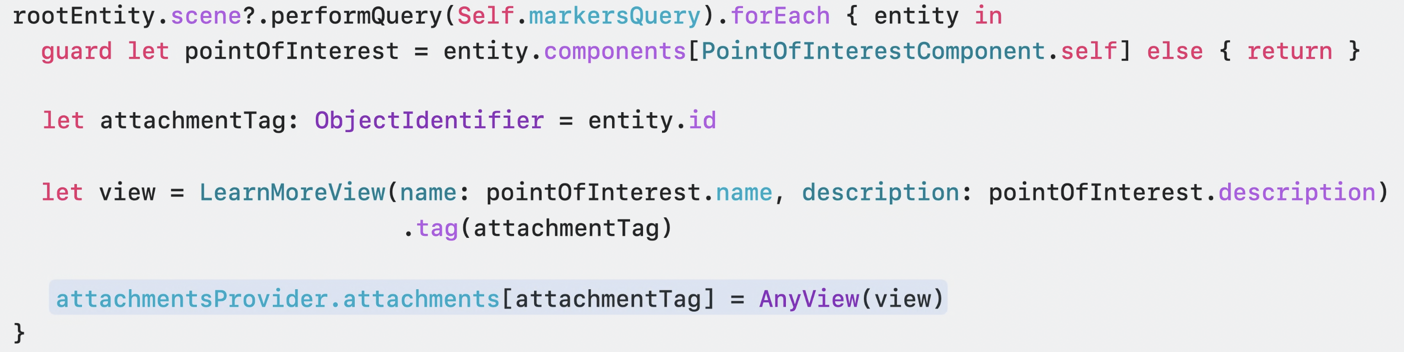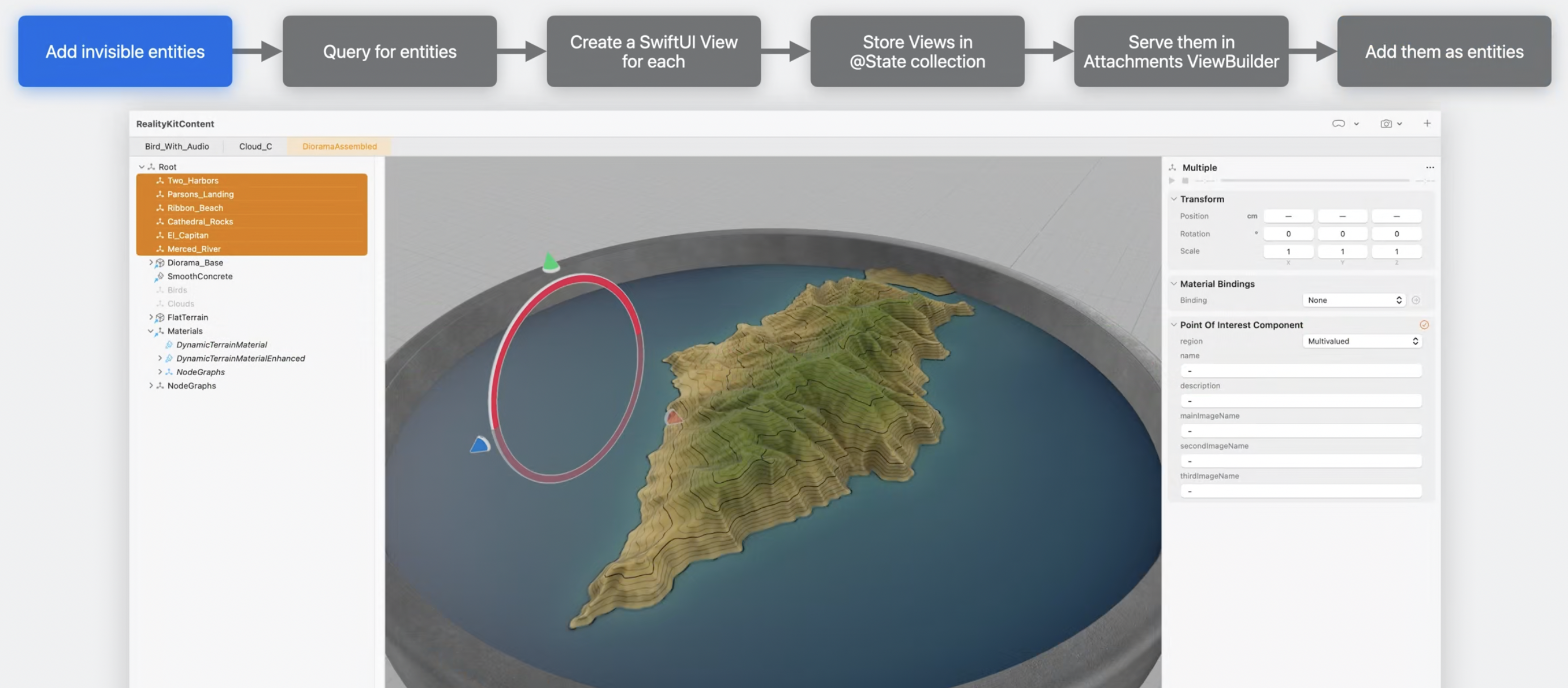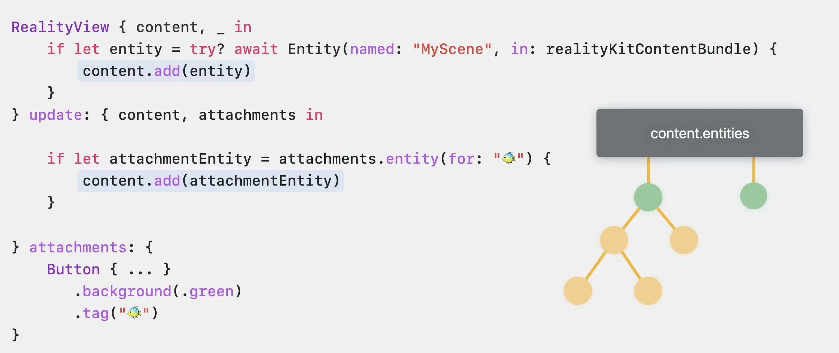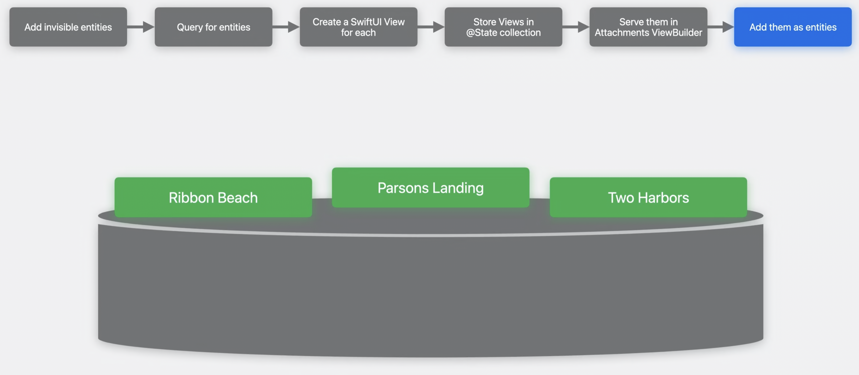 RealityKit scene에 SwiftUI 콘텐츠를 추가하는 새로운 방법인 Attachments API가 등장했다.