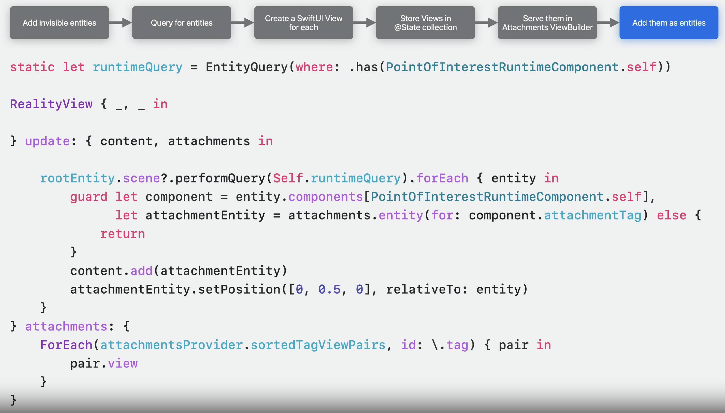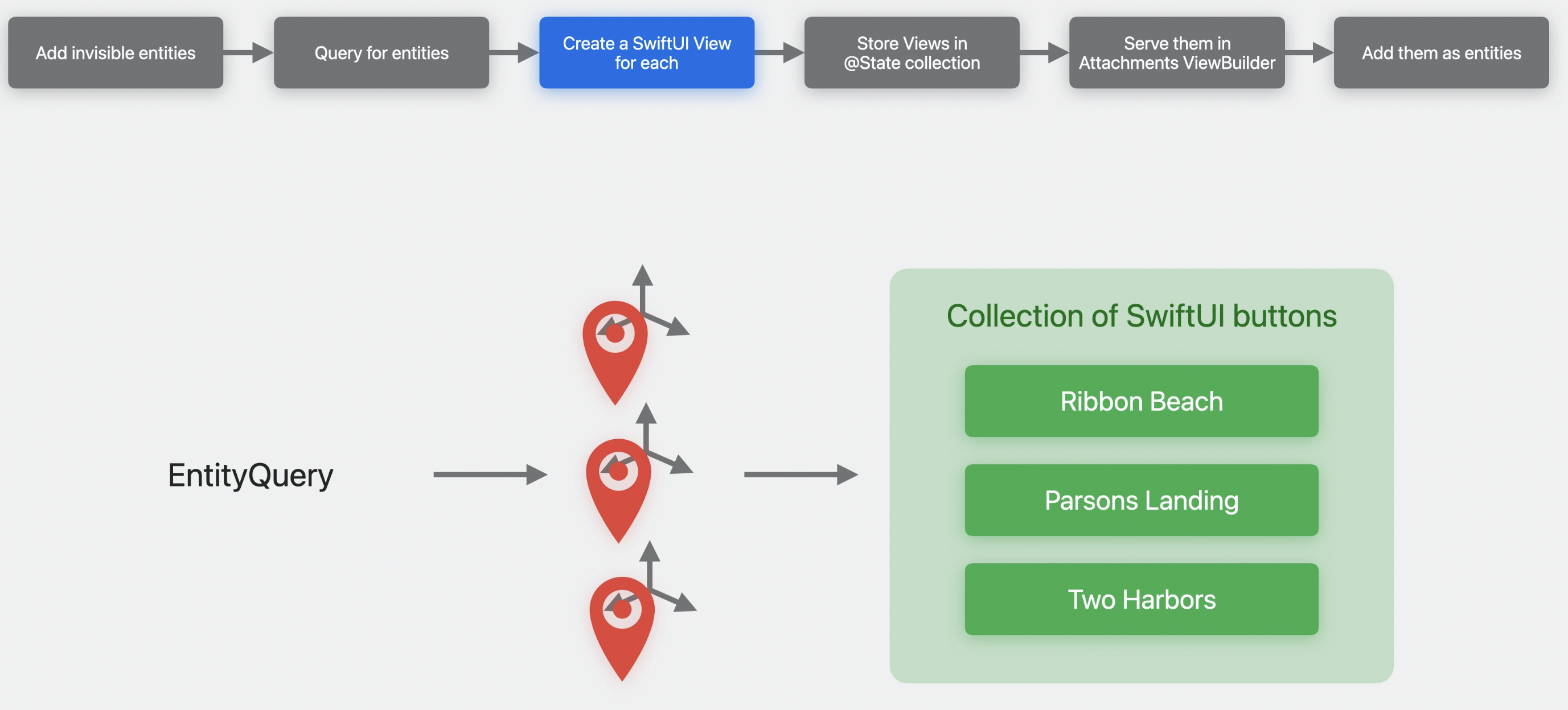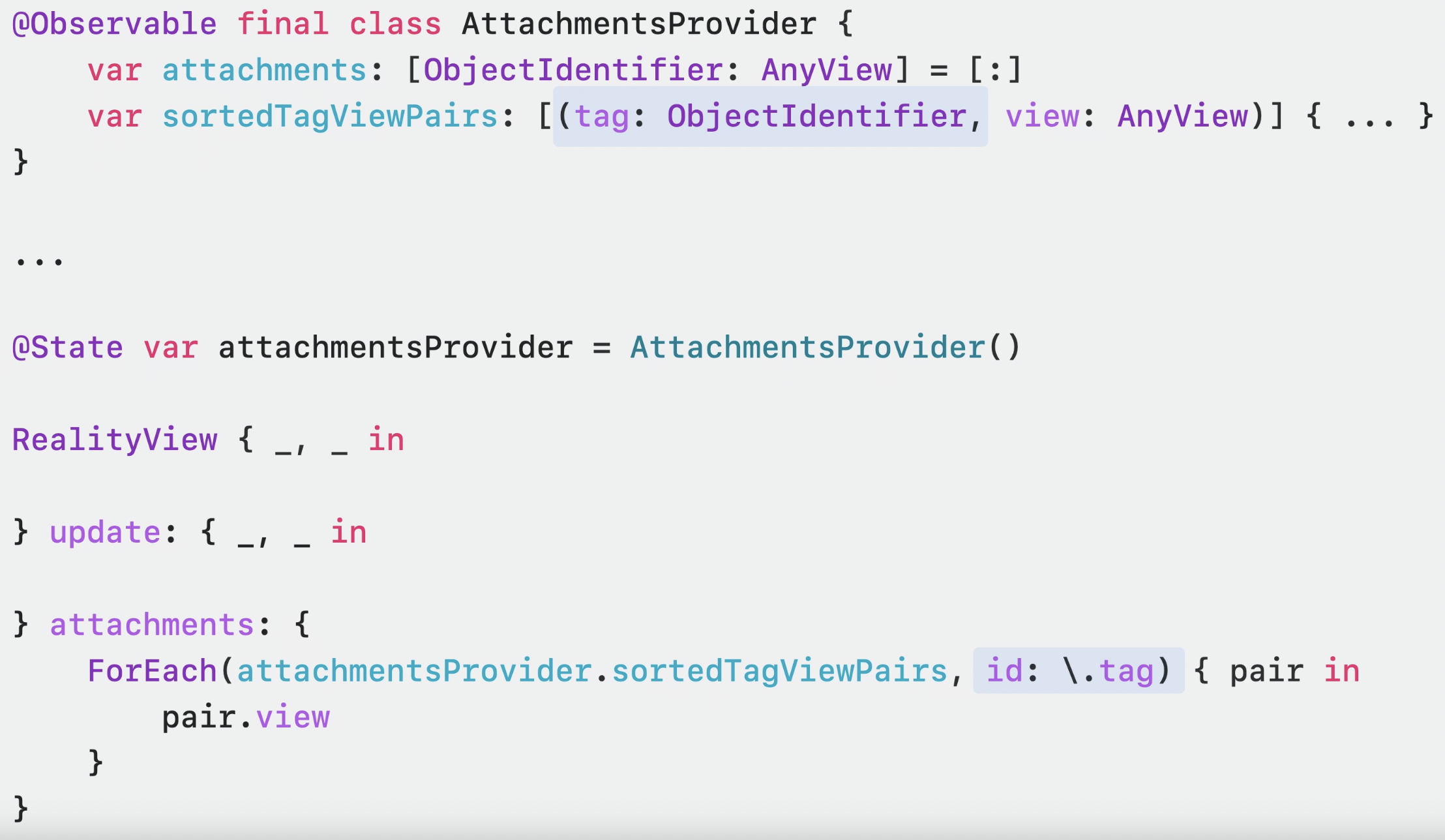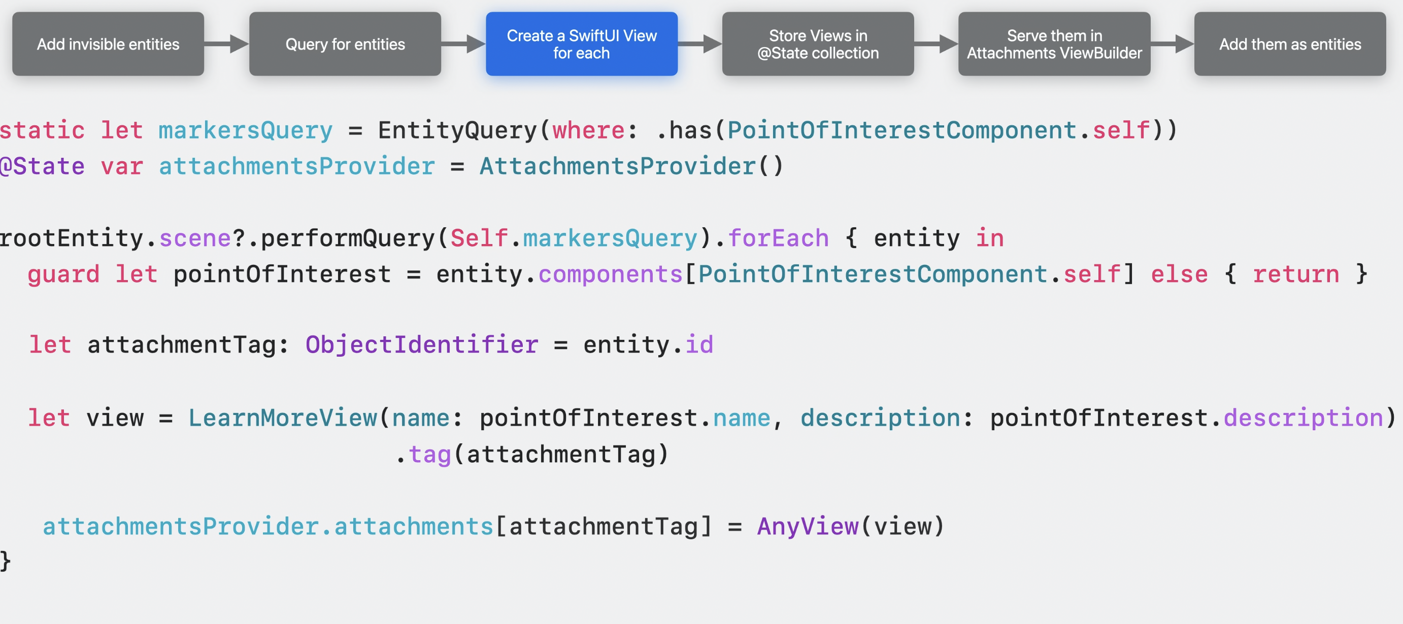 RealityKit scene에 SwiftUI 콘텐츠를 추가하는 새로운 방법인 Attachments API가 등장했다.