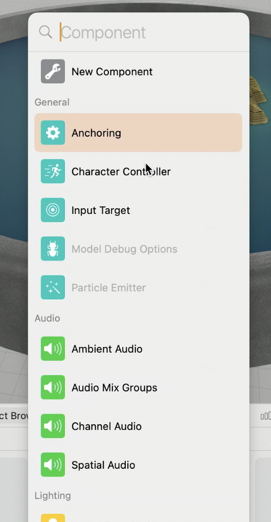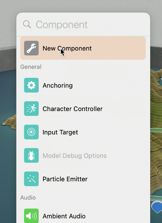 같은 것을 reality composer pro에서 하려면 원하는 entity를 선택한 뒤