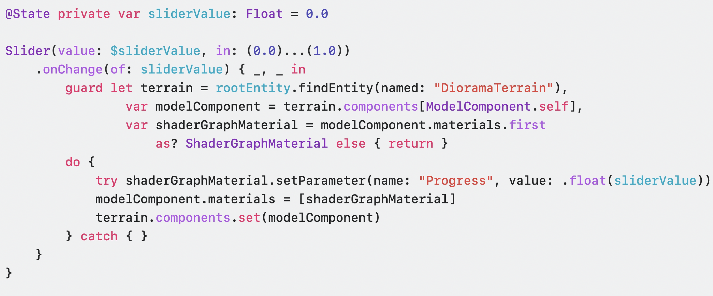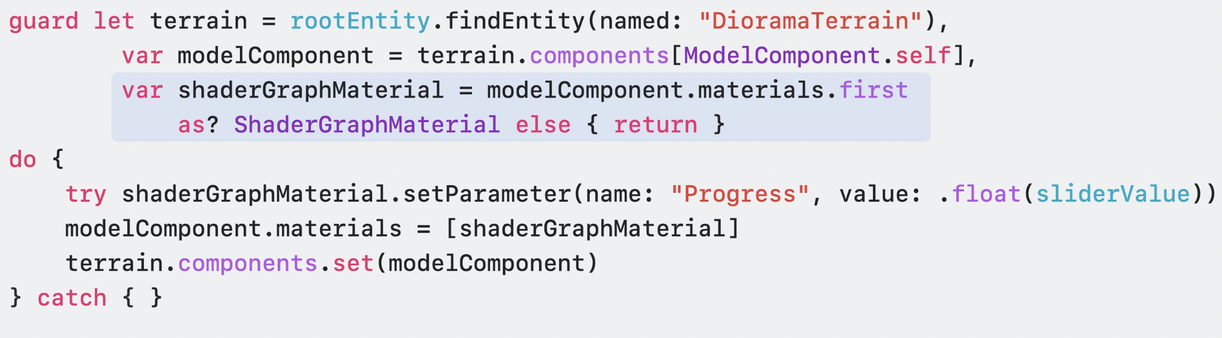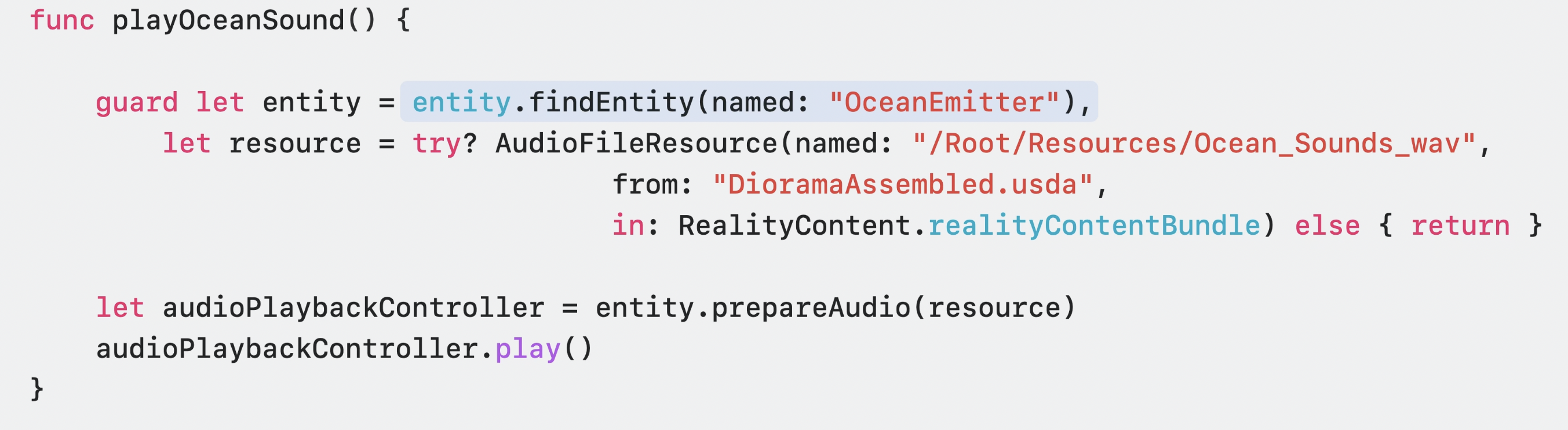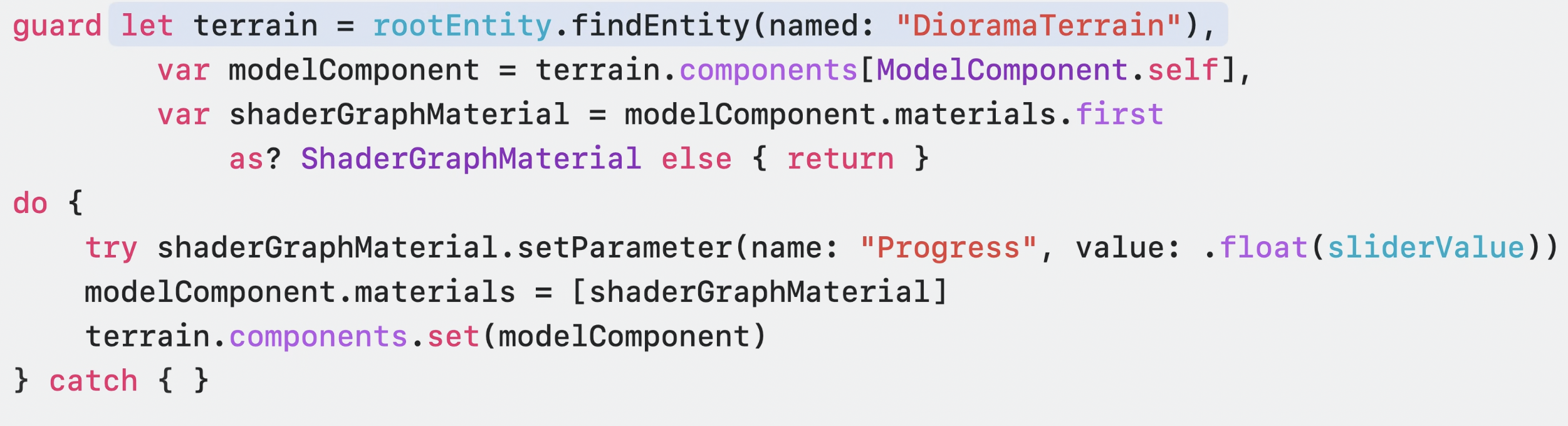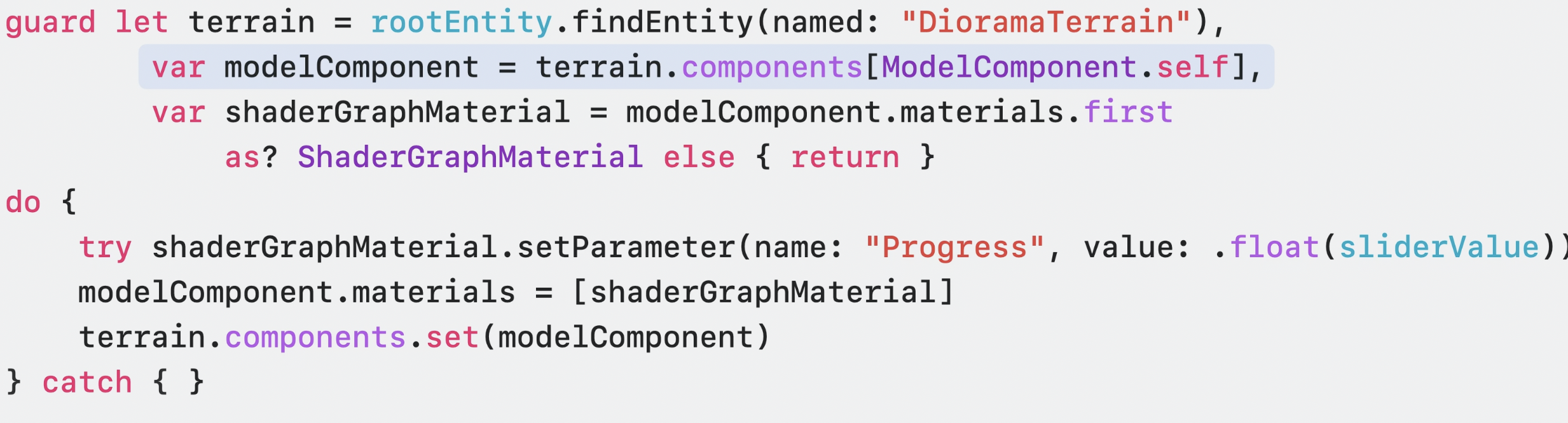 그리고 우리는 Reality Composer Pro에서 scene을 디자인 할 때 이 식별자를 알 필요 없이 runtime에 entity에서 가져올 수 있다.