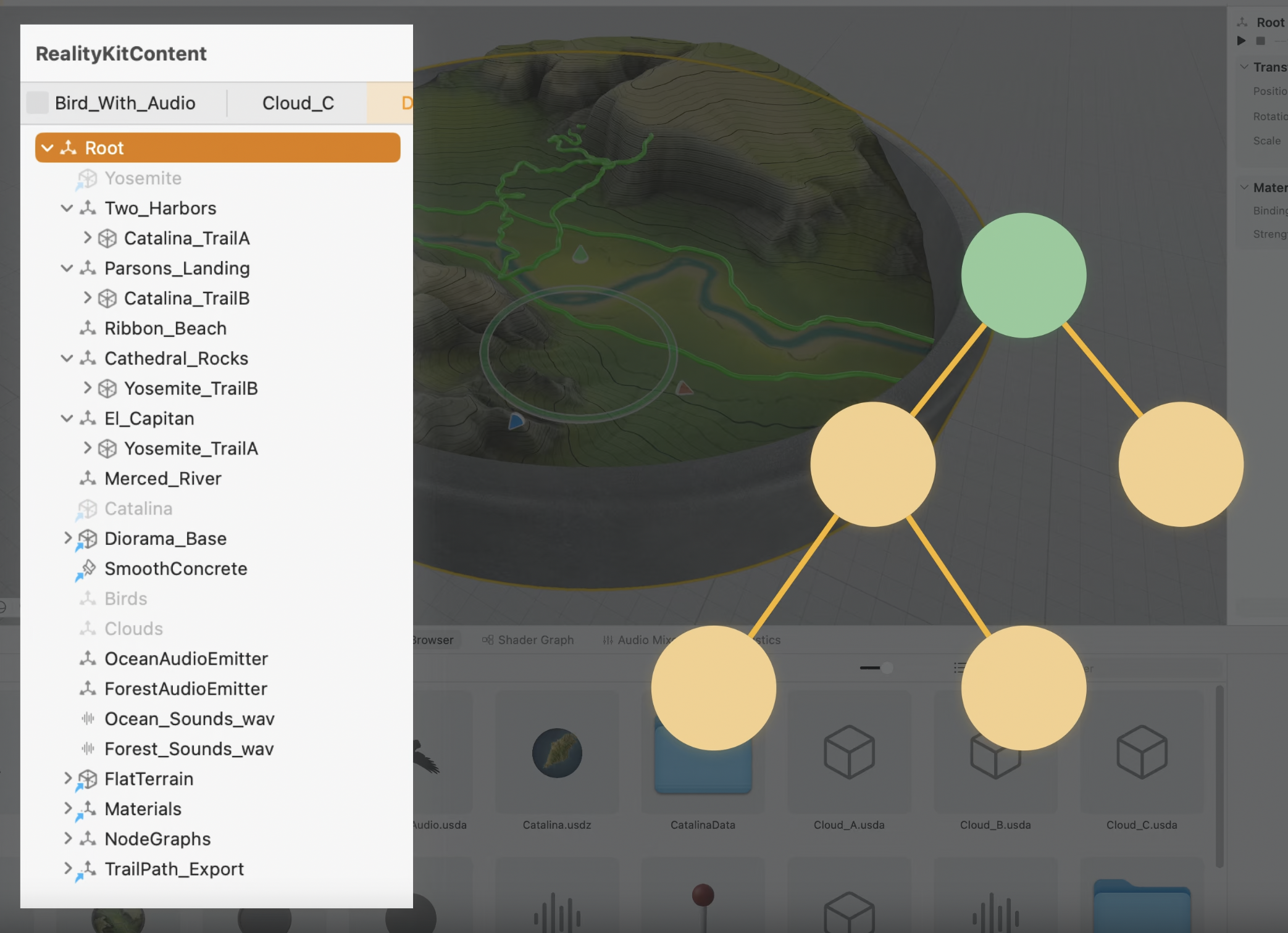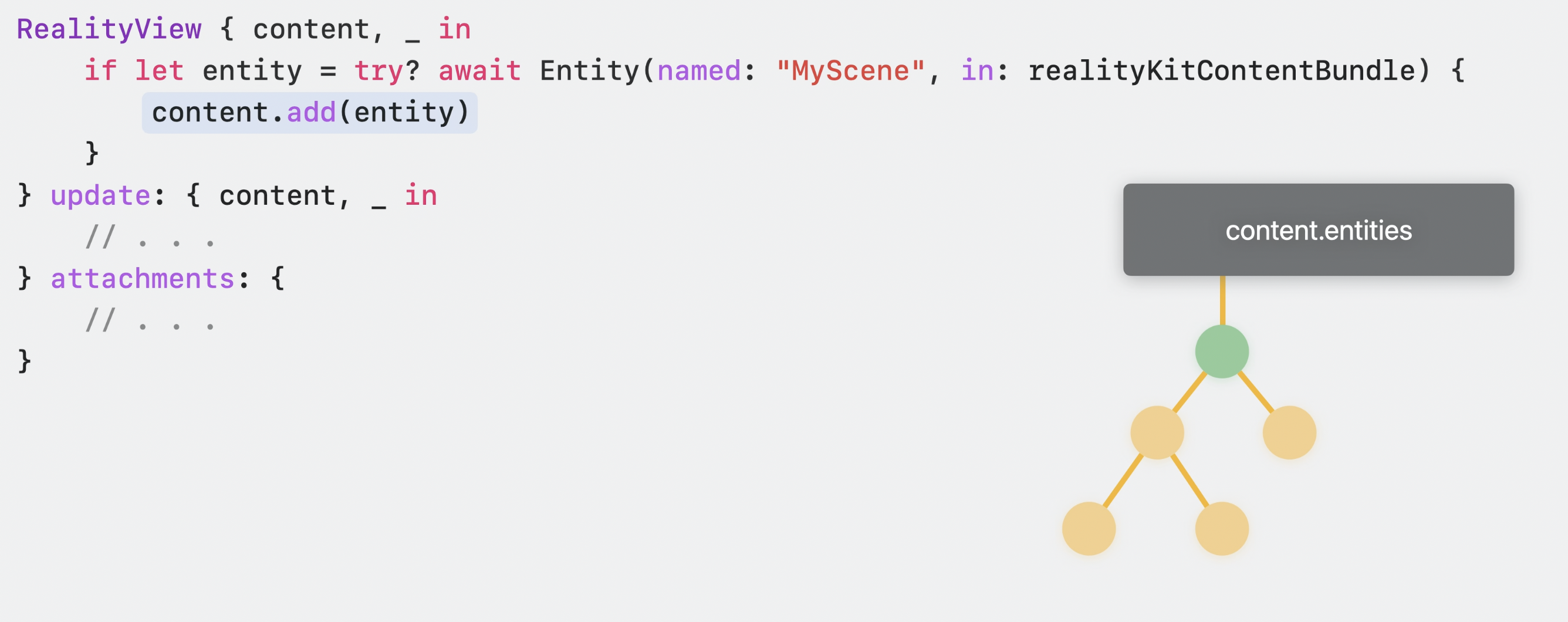 RealityKit content에 entity를 추가하면 이건 scene에서 top-level entity가 된다.