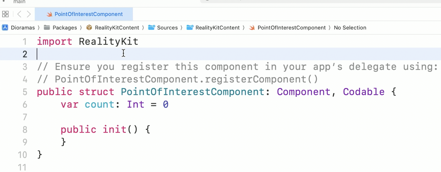 C는 패키지에 있지만 Codable하지 않다. 그래서 Reality Composer Pro는 이것을 무시하게 된다.