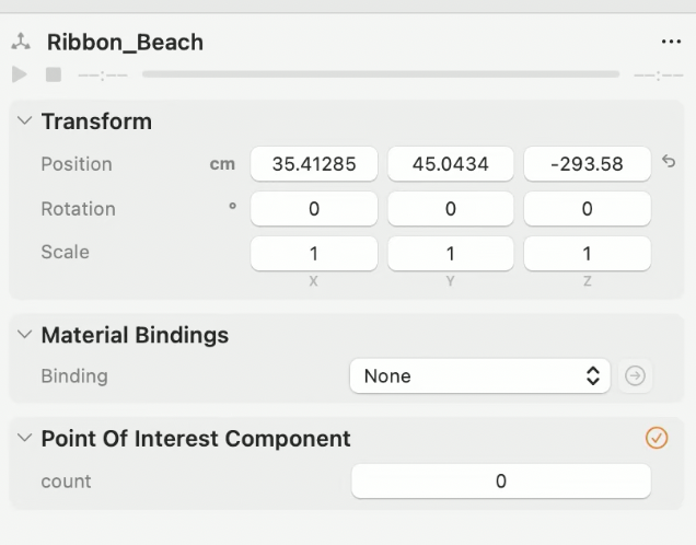 2) Component를 추가하면 모든 Inspector panel에 보임 -> Reality Composer Pro에서 point들을 추가할 때마다 unique한 Tag를 기억해서 반영하는 건 번거로움