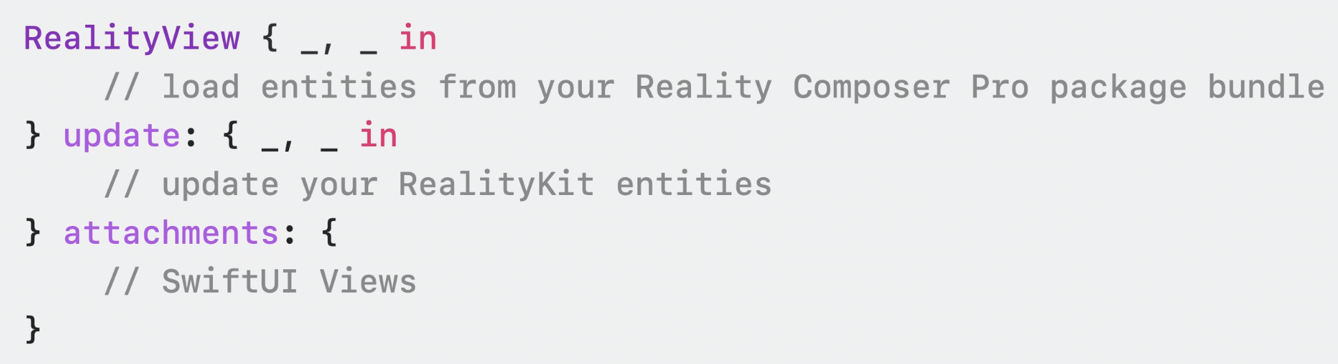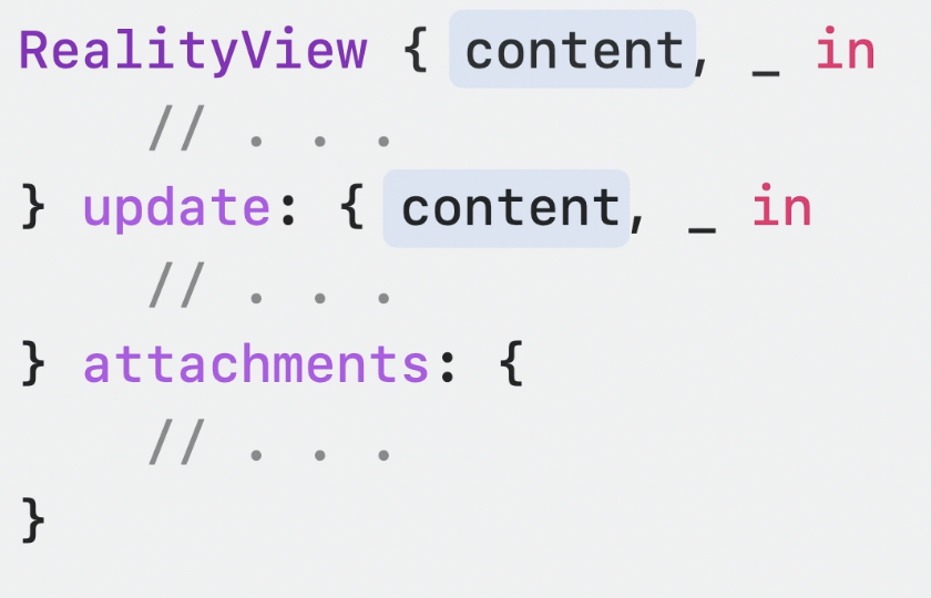 RealitView에서 closure를 통해 이렇게 사용된다.