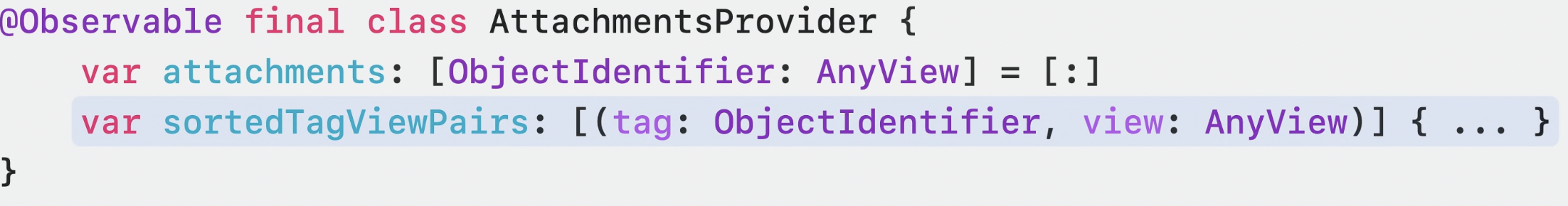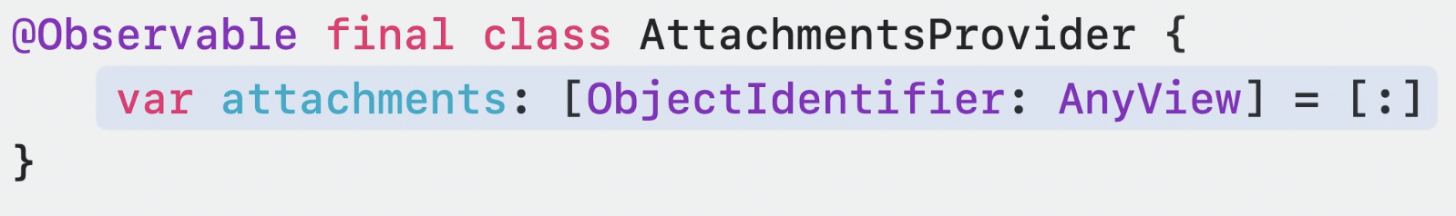 그 후 attachments ViewBuilder를 보면 attachment에 대한 콜렉션에 대한 ForEach가 동작한다.