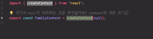 createContext : context를 생성한다.useContext : context를 구독하고 해당 context의 현재 값을 읽는다.Provider : context를 하위 컴포넌트에게 전달한다.예시 :