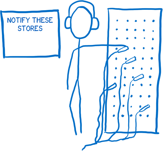 이것은 마치 전화 교환대에서 교환원이 일하는 것과 같다 -- [전화 교환대에서는 등록된 모든 전화들과의 연결이 가능하다].