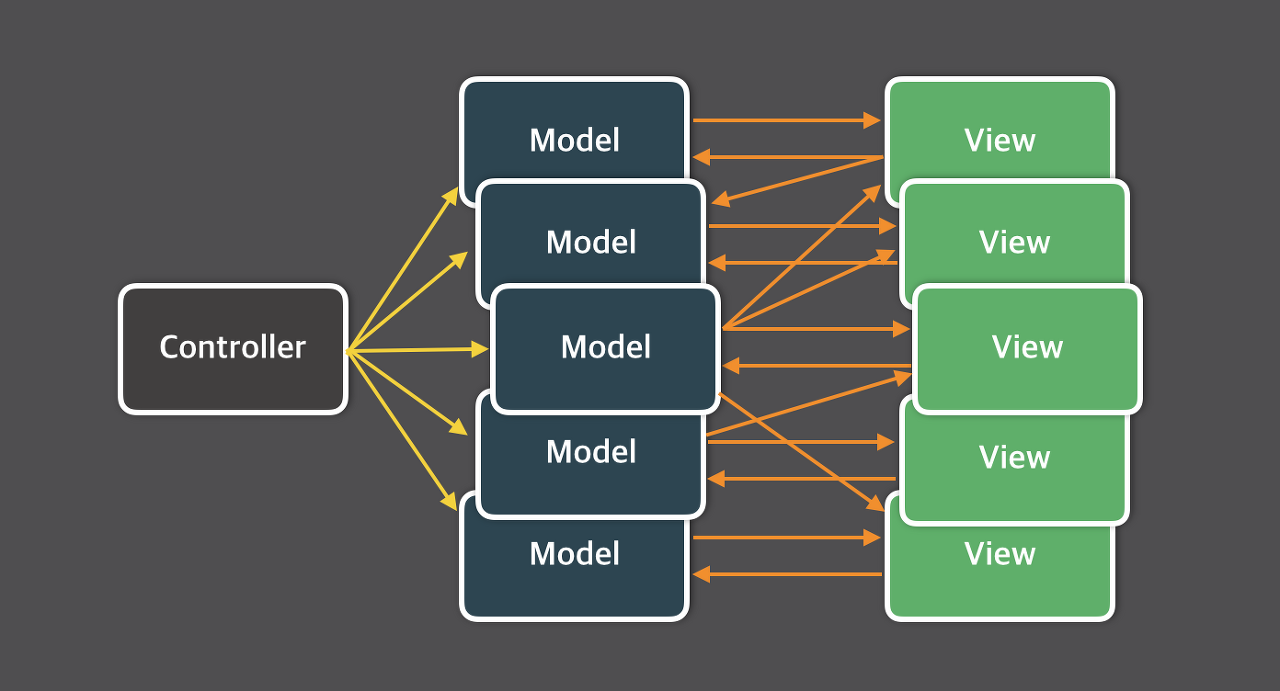 MVC 모델에서는 View가 다양한 상호작용을 위해 여러 개의 Model을 동시에 업데이트하고 Model 역시 여러 개의 View를 업데이트할 수 있는데, ,새로운 기능이 추가되거나 규모가 커질수록 복잡한 데이터 흐름을 가지게 되어 예측 불가능한 코드를 만들게 되고 버그가 발생하게 되었다.