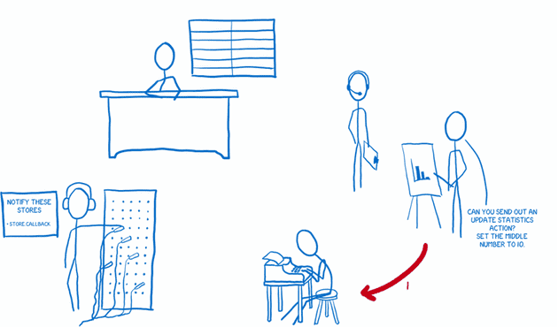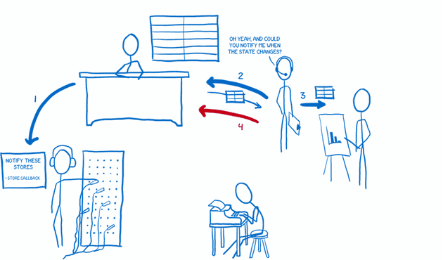 또한, 이런 변경들은 비동기적으로(asynchronously)생길 수도 있었고, 하나의 변경이 다수의 변경들을 일으킬 수 있었다.