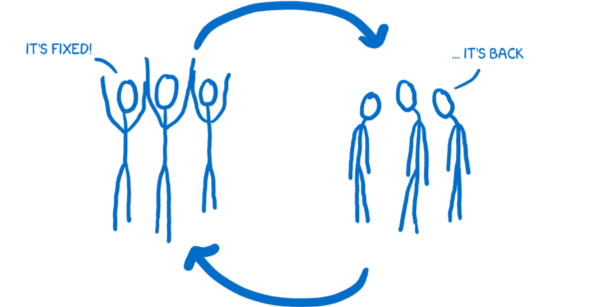 팀이 이 버그를 고치고 얼마동안은 괜찮았지만 [업데이트를 하다보면] 곧 다시 나타났다.