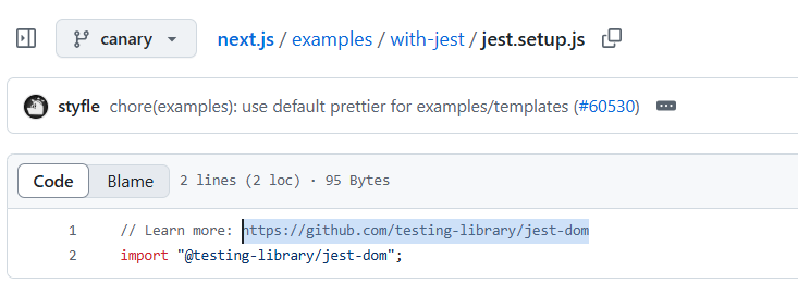어라? 여기엔 jest.setup.ts란 파일이있네? 그래서 초기에 설정해줘야 하는게 있나? 싶어서 해당 주소(jest-dom)에 접근해봤음.