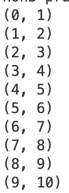 x 값에 따른 인덱스와 값이 튜플형태로 출력됨