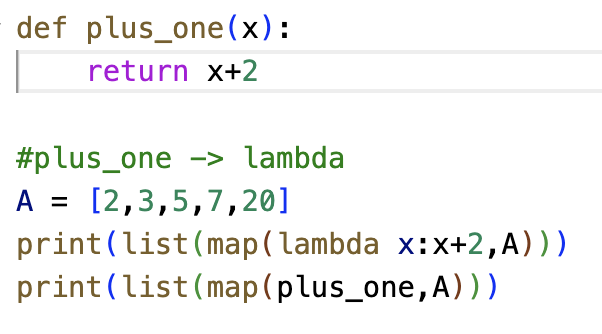 map(함수,인자)-> 함수에 따른 값으로 인자를 map 해주는데 여기서 lambda 사용해주는게 좋음!