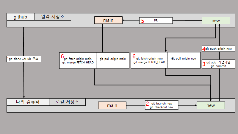 다음 단계인5단계 풀리퀘스트보내기, 6단계 원격저장소 브랜치 로컬에 가져오기