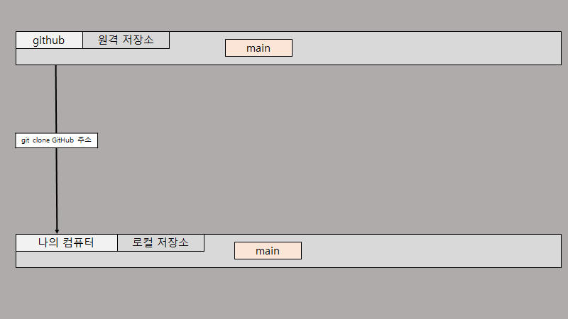 작업 초기에 가장 먼저 실행하는 작업이며 나의 경우 로컬에서의 작업 내역이 아예 없을 때 사용한다. 로컬에서 로컬저장소를 만들고(git init) 원격저장소와 연결하는 것(git remote add origin github주소 )보다 입력할 명령어가 적기 때문에 실수할 일이 거의 없어 주로 사용한다.