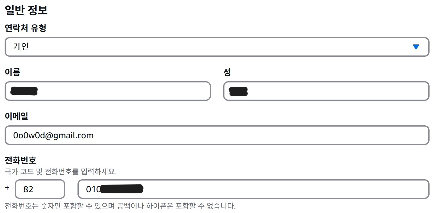 도메인 등록을 위해 연락처 정보를 입력해야 한다.