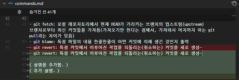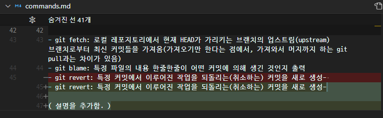 추가한 내용 두 줄이 하나의 commit으로 통합되었음을 확인할 수 있다.