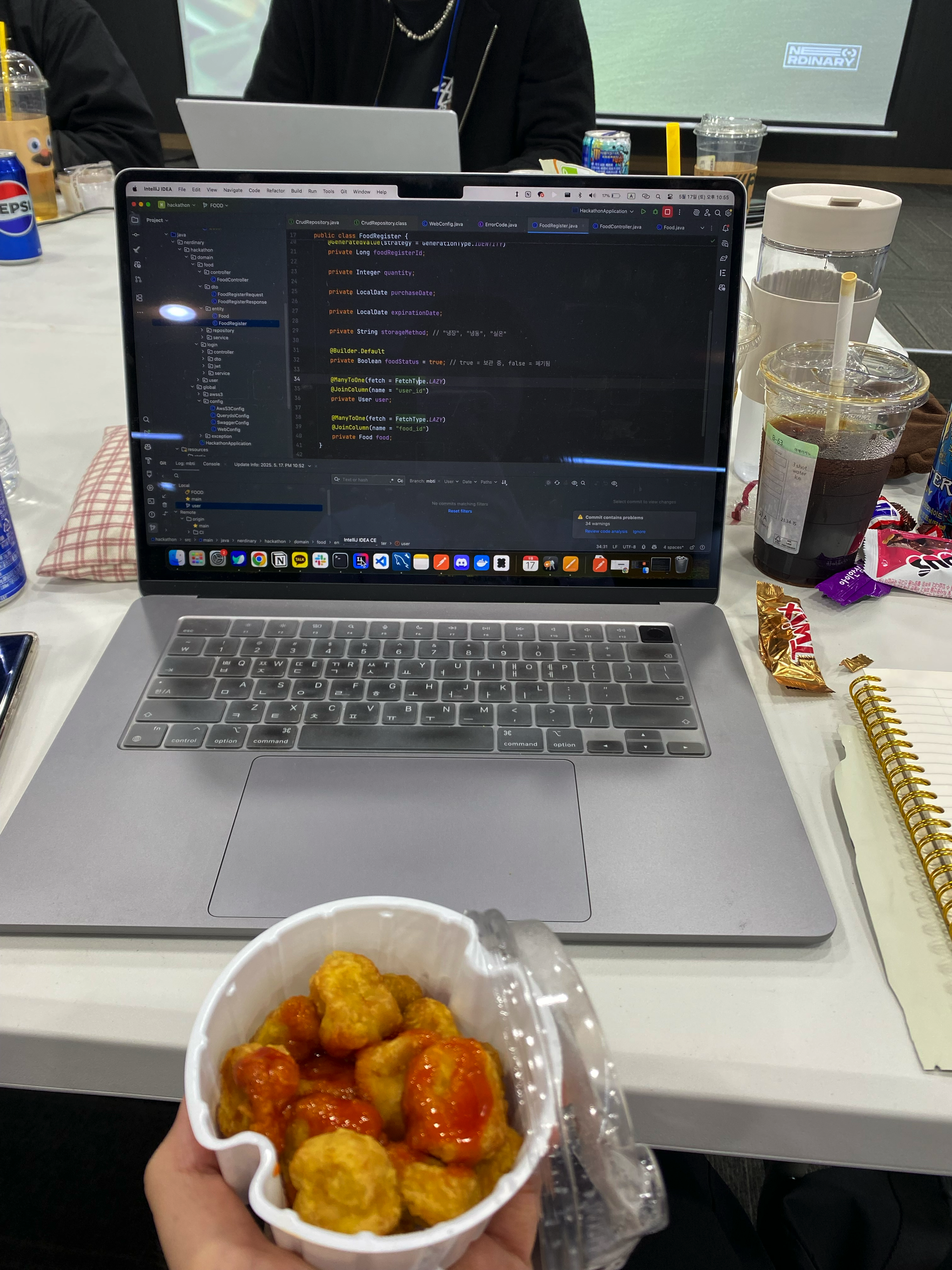 해커톤은 무거워지지 않는 것이 핵심이라고 생각한다. 당연히 최선을 다하지만 화려한 기술을 쓰는 것 보다는 mvp를 작게 가져가고 그것을 확실하게 개발하고, 결국 아이디어 실현!이 해커톤의 목적임을 잊지 않고 간식 타임을 즐겼다ㅎㅎ