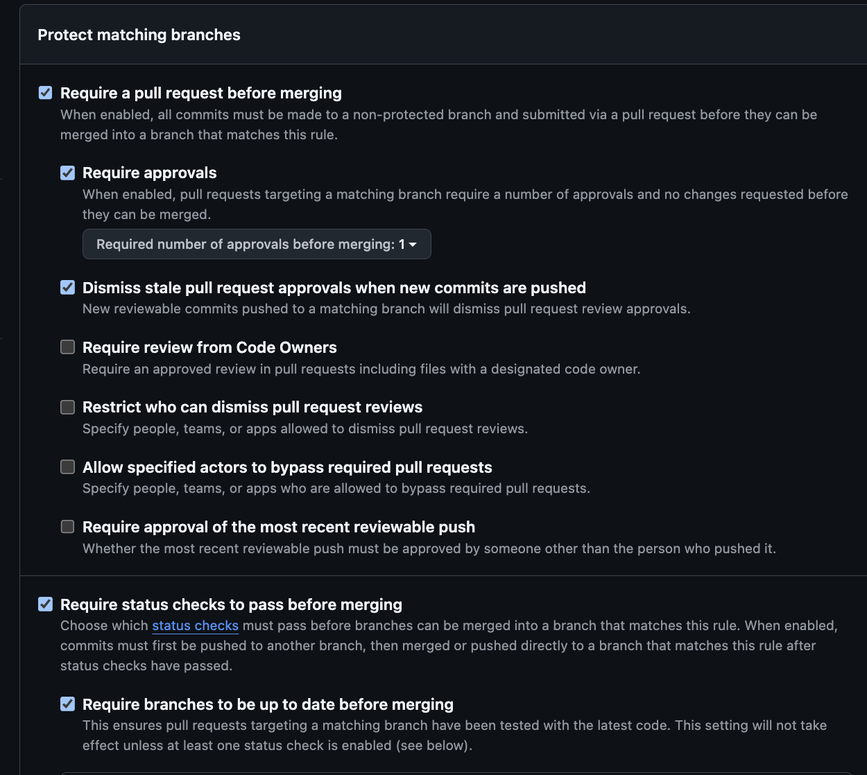 PR은 병합되기 전에 최소한 한 명의 승인(리뷰어의 승인)이 필요