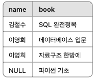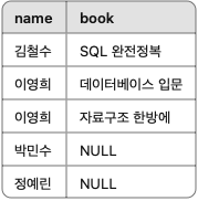 โข ๋์ ์ฐ๊ฒฐ๋ ์ฃผ๋ฌธ์ด ์์ผ๋ฏ๋ก book์ NULL๋ก ๋์ด